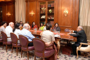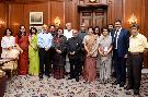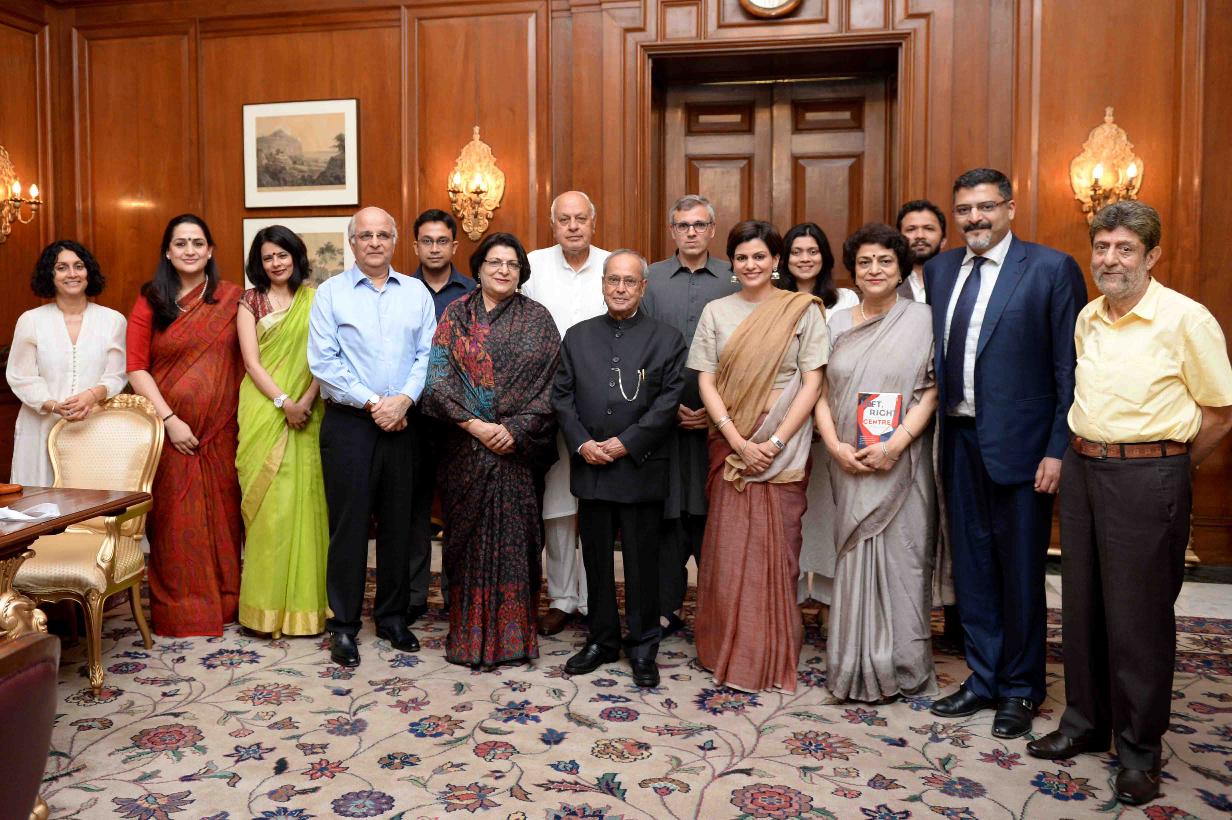| Caption: | The President of India, Shri Pranab Mukherjee receiving a copy of the book ''Left, Right and Centre The Idea of India'' from Ms. Nidhi Razdan, Executive Editor, NDTV with others, at Rashtrapati Bhavan on July 17, 2017. |