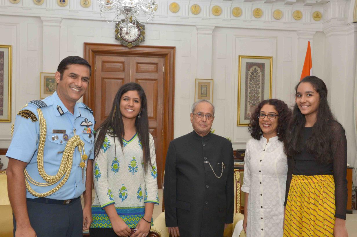 | Caption: | The President of India, Shri Pranab Mukherjee meeting with Gp. Capt. Sanjiv Sethi, Deputy Military Secretary to the President alongwith his family members, at Rashtrapati Bhavan on July 19, 2017. |