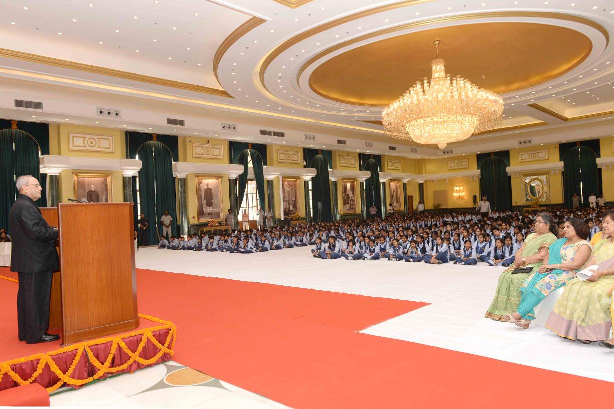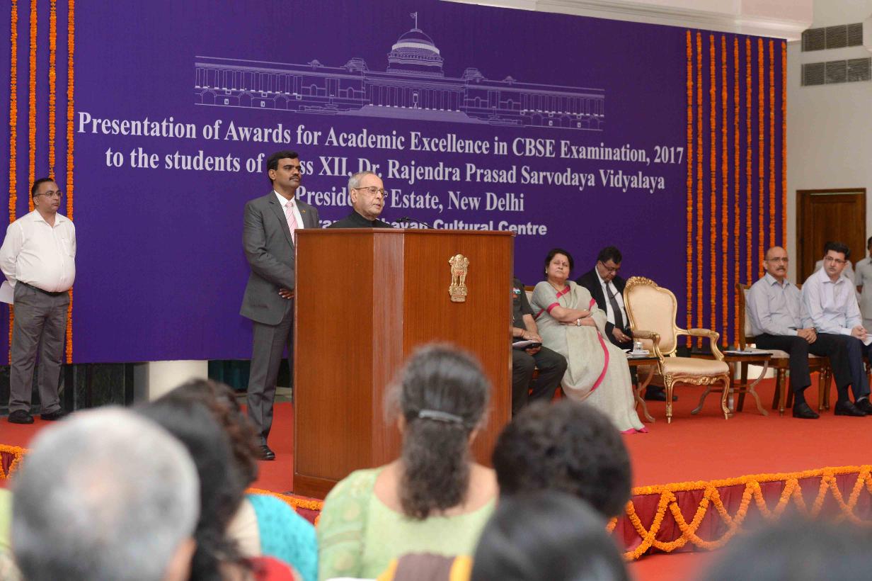 | Caption: | The President of India, Shri Pranab Mukherjee addressing at the presentation of the Pranab Mukherjee award and other award for Academic Excellence in CBSE Examination, 2017, at Rashtrapati Bhavan Cultural Centre on July 19, 2017. |