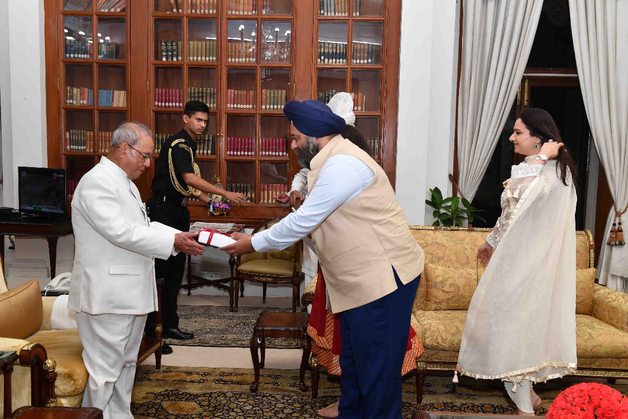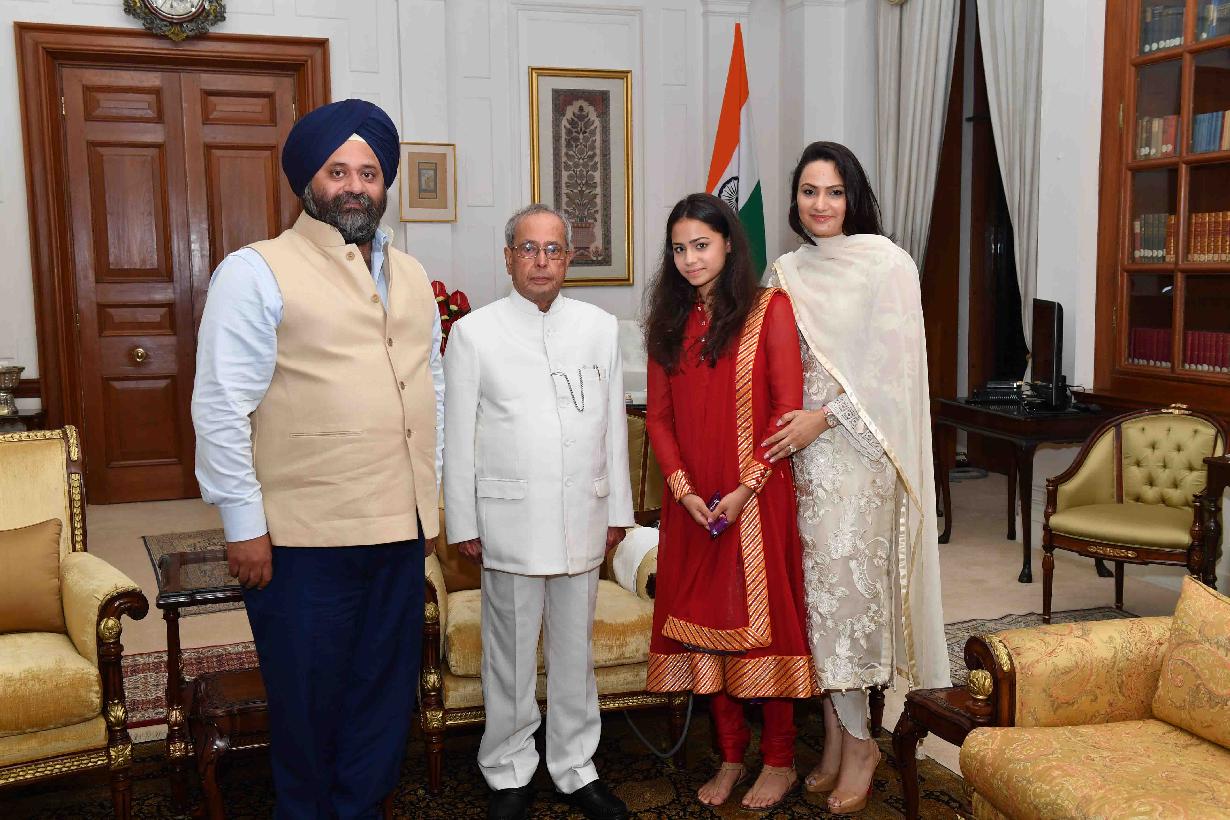 | Caption: | The President of India, Shri Pranab Mukherjee meeting with Dr. Anand, Smt. Tarika Sahni and Ms Rhea Sahni, at Rashtrapati Bhavan on July 23, 2017. |