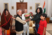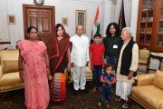 | Caption: | The President of India, Shri Pranab Mukherjee meeting with Dr. Kanhaiya Tripathi, OSD alongwith his family, at Rashtrapati Bhavan on July 23, 2017. |