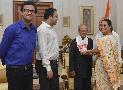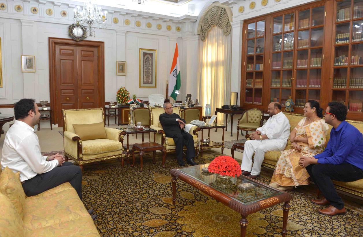 | Caption: | The President of India, Shri Pranab Mukherjee meeting with Smt. & Shri Prafull Kumar Mahanta, former Chief Minister of Assam with others, at Rashtrapati Bhavan on July 21, 2017. |