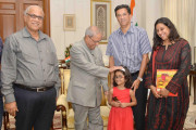 | Caption: | The President of India, Shri Pranab Mukherjee meeting with Shri Digambar Kamath, former Chief Minister of Goa with others, at Rashtrapati Bhavan on July 06, 2017. |