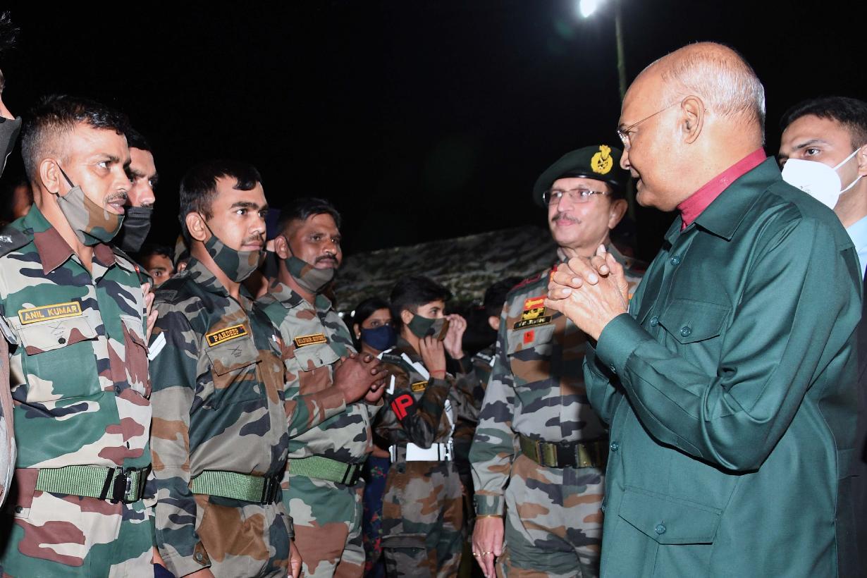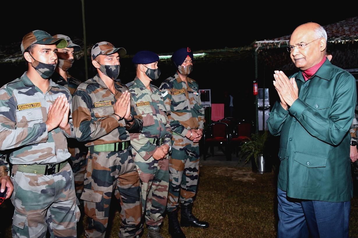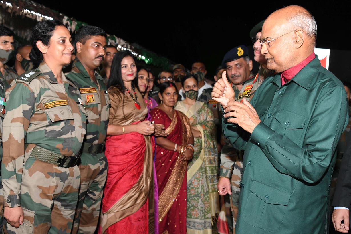 | Caption: | The President of India, Shri Ram Nath Kovind interacted with the jawans & officials of all ranks along with their families at the Northern Command, Udhampur, in Jammu & Kashmir on October 14, 2021. The President extended best wishes to the soldiers on the occasion of Dussehra. |