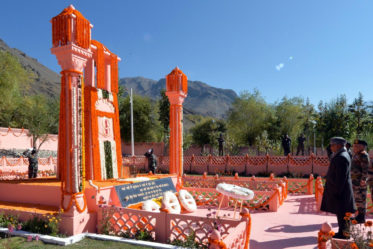 | Caption: | The President of India, Shri Ram Nath Kovind laid a wreath at the Kargil War Memorial, Drass, to pay homage to the brave soldiers who made supreme sacrifice defending the nation at Kargil, on October 15, 2021. |