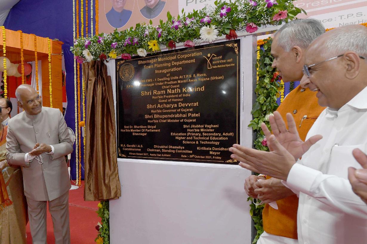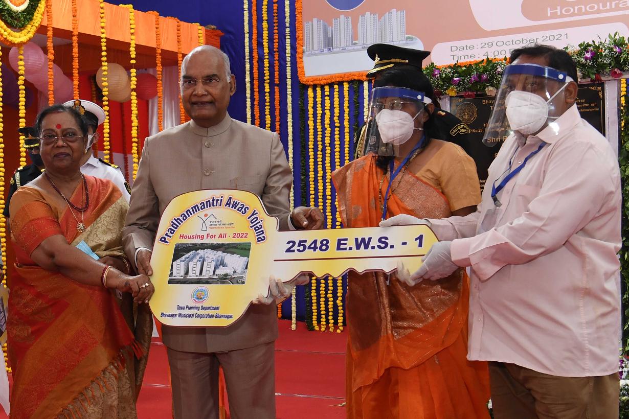 | Caption: | The President of India, Shri Ram Nath Kovind inaugurated a housing scheme project for Economically Weaker Section under Pradhan Mantri Awas Yojana - Urban, at Bhavnagar, in Gujarat on October 29, 2021. |