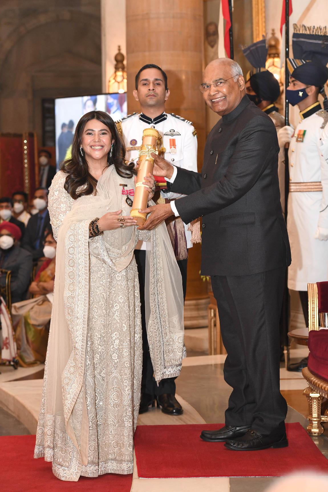 | Caption: | The President of India, Shri Ram Nath Kovind presents Padma Shri awards, for the year 2020, at a Civil Investiture Ceremony-II, at Rashtrapati Bhavan on November 08, 2021. |