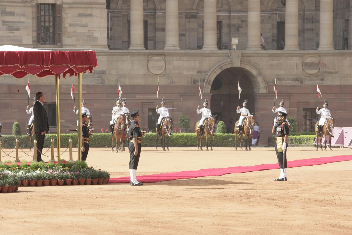 | Caption: | The President of India, Dr A P J Abdul Kalam at the Ceremonial Reception of the President of the Republic of Cyprus, HE Mr Tassos Papadopoulos and his wife Mrs Fotini Papadopoulos at the Forecourt of Rashtrapati Bhavan in New Delhi on April 12, 2006 |