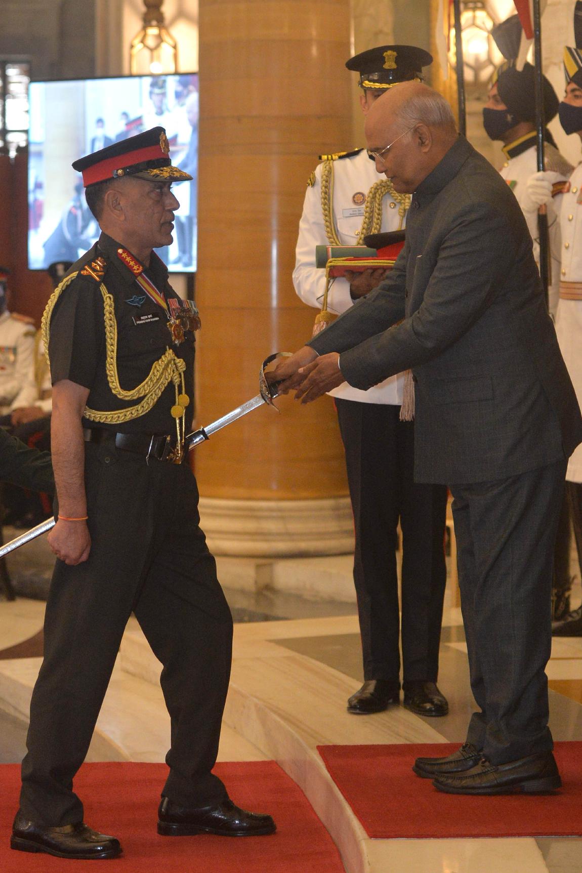 | Caption: | The President of India, Shri Ram Nath Kovind confers the Honorary Rank of General of the Indian Army on General Prabhu Ram Sharma, the Chief of the Army Staff, Nepali Army, at a special Investiture Ceremony, at Rashtrapati Bhavan on November 10, 2021. |