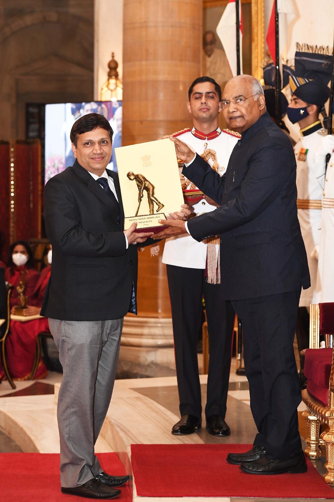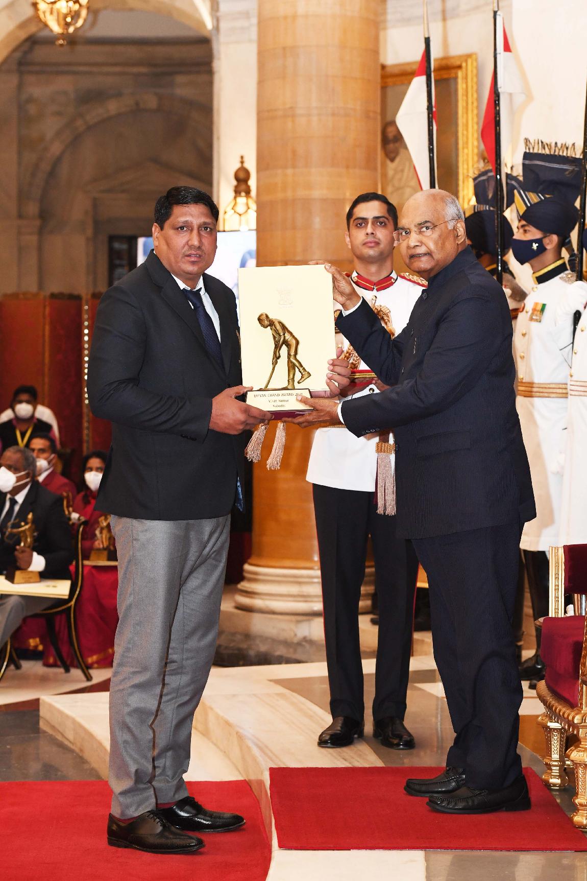 | Caption: | The President of India, Shri Ram Nath Kovind presenting Dhyan Chand Award 2021, at the Sports & Adventure Awards function, at Rashtrapati Bhavan on November 13, 2021. |