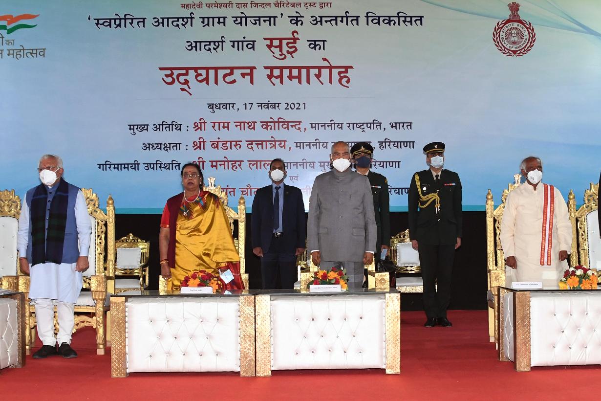 | Caption: | The President of India, Shri Ram Nath Kovind inaugurates various public facilities at Adarsh Village Sui, in Bhiwani district of Haryana on November 17, 2021. |