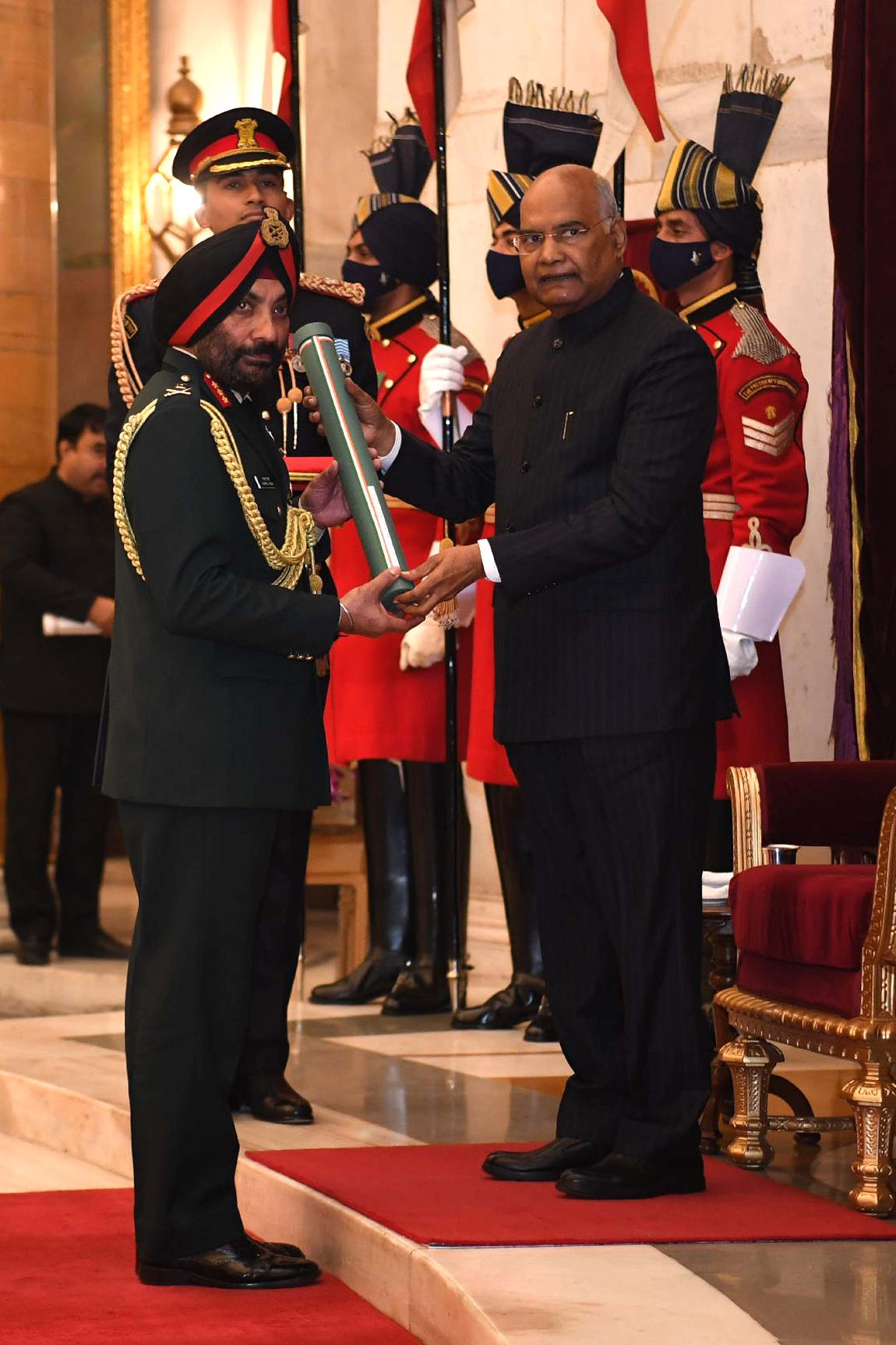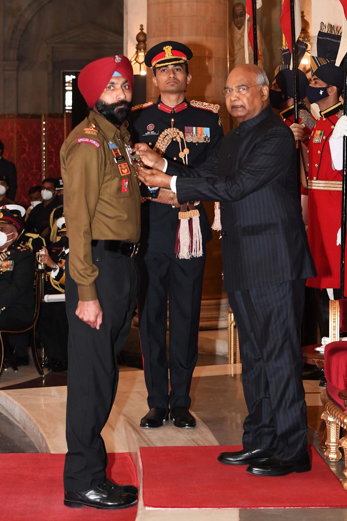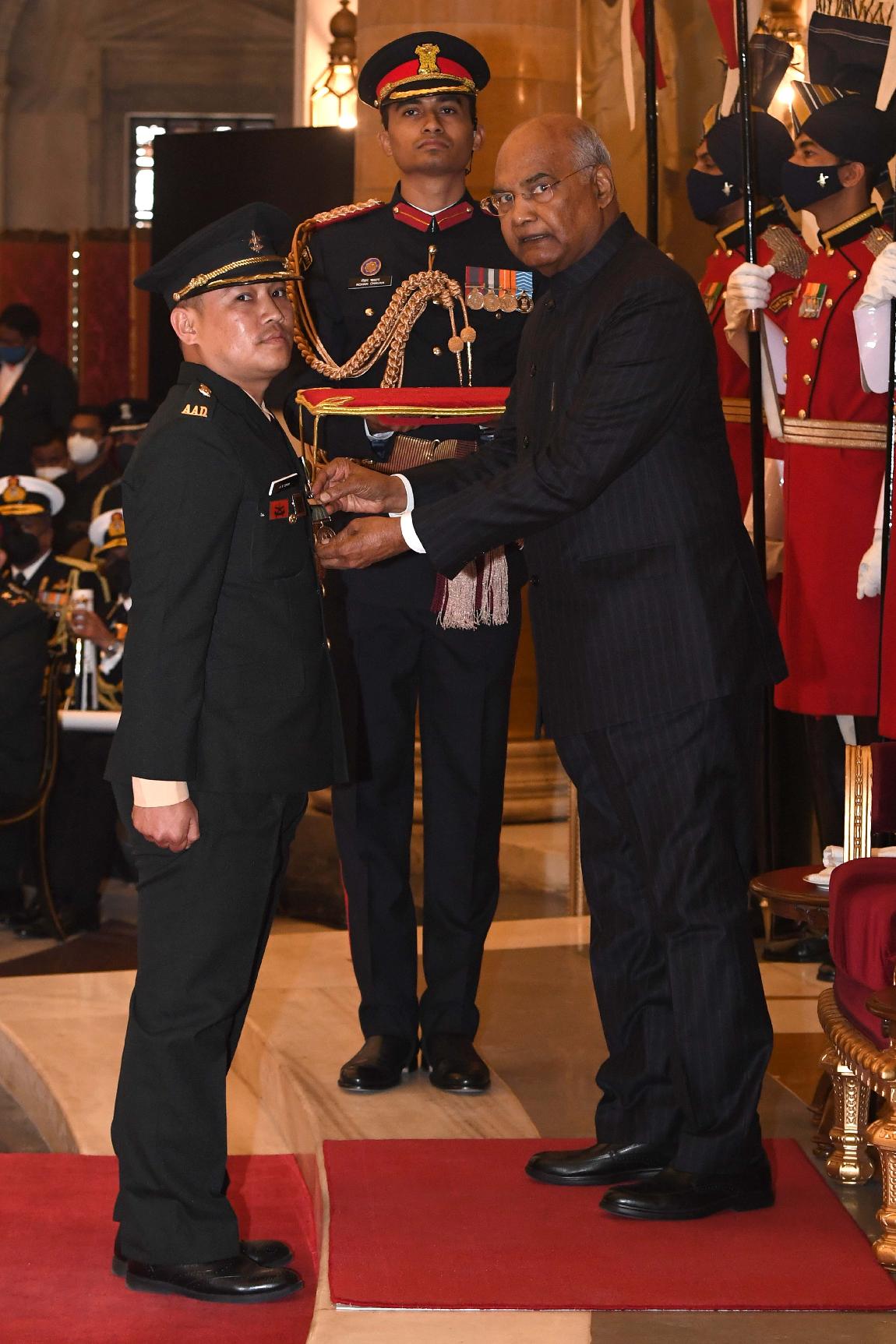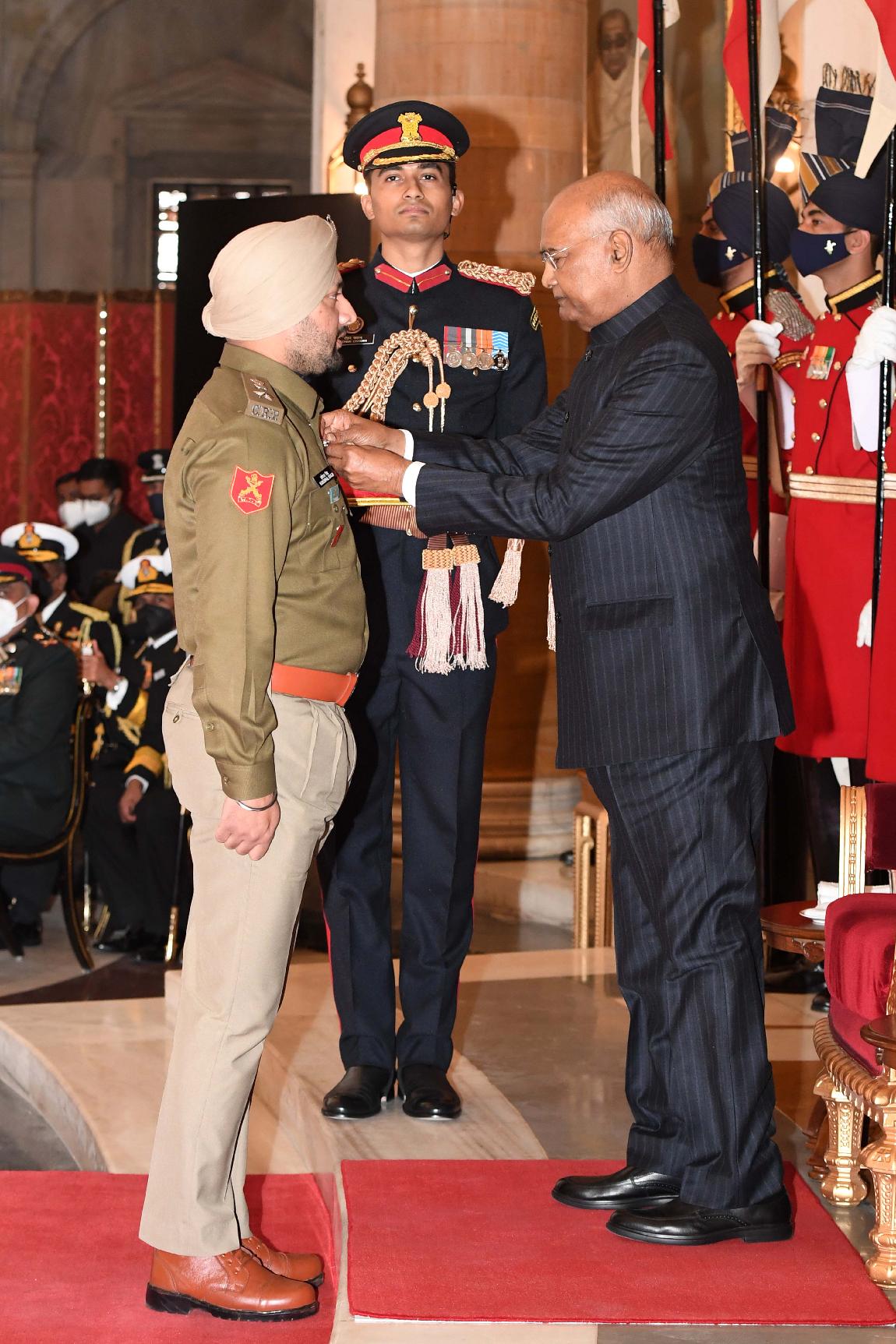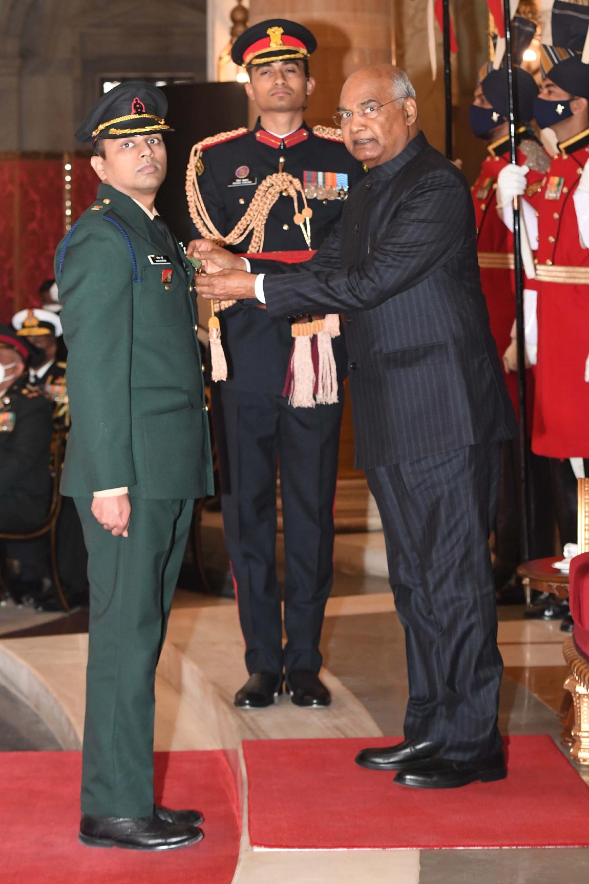| Caption: | The President of India, Shri Ram Nath Kovind presents the Gallantry Awards and Distinguished Service Decorations for the year 2020, at the Defence Investiture Ceremony-I, at Rashtrapati Bhavan on November 22, 2021. |
