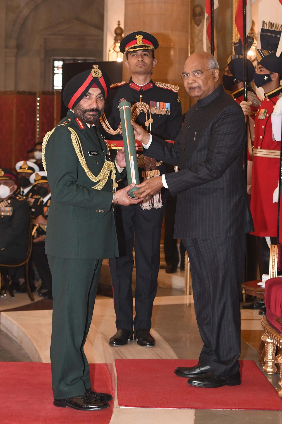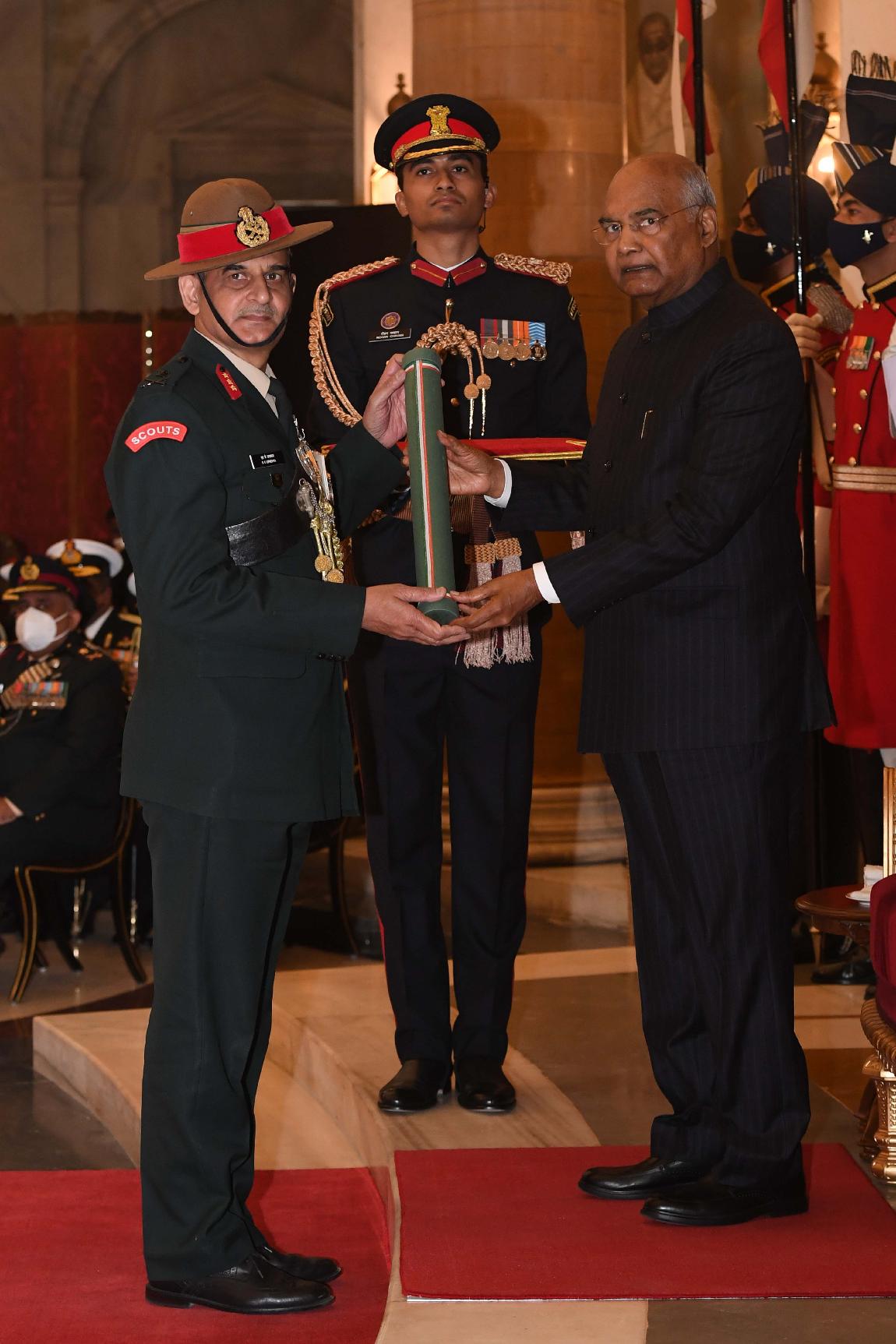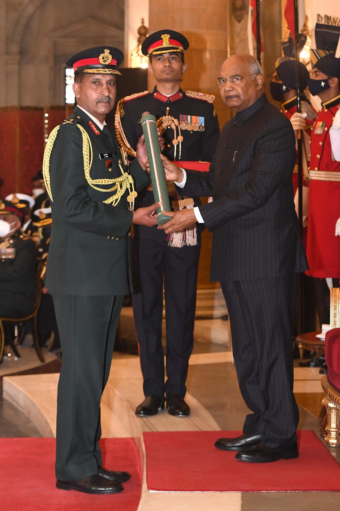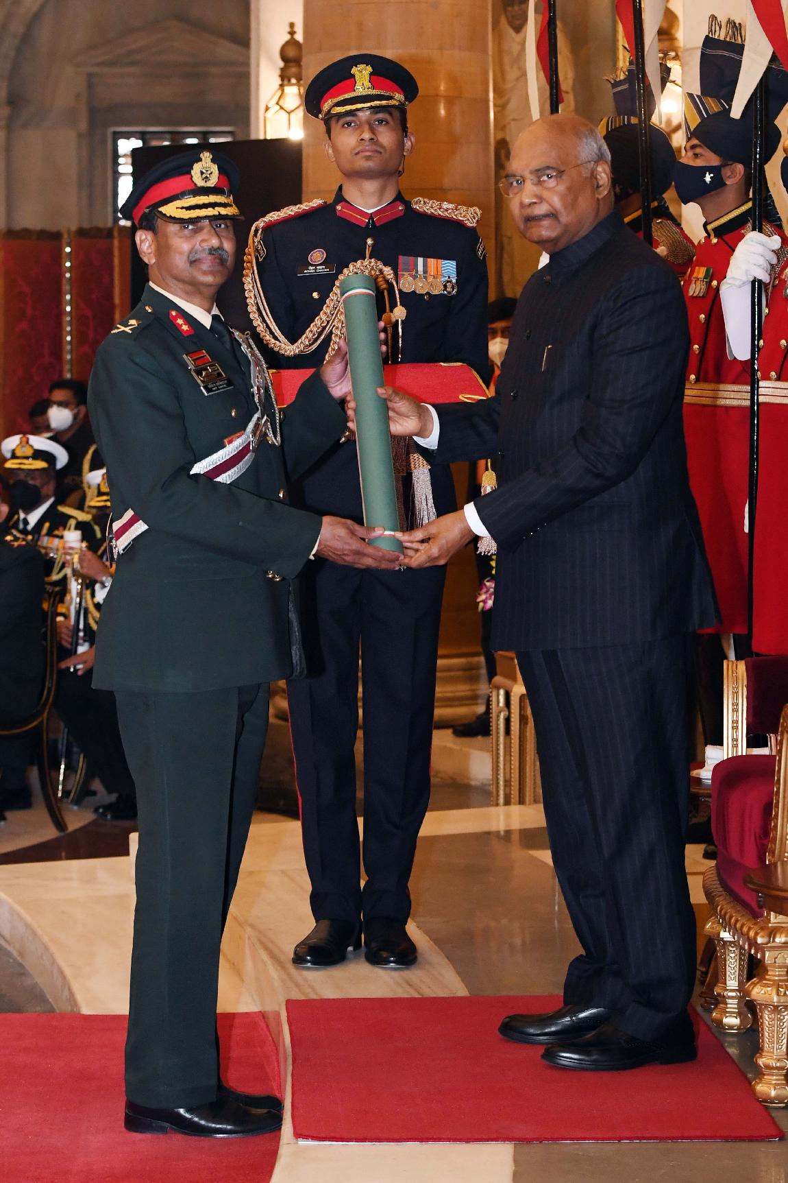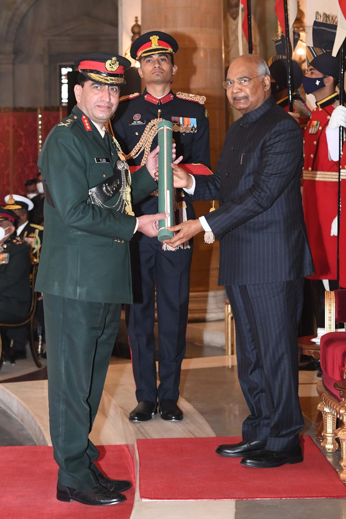 | Caption: | The President of India, Shri Ram Nath Kovind presents the Gallantry Awards and Distinguished Service Decorations for the year 2020, at the Defence Investiture Ceremony-I, at Rashtrapati Bhavan on November 22, 2021. |