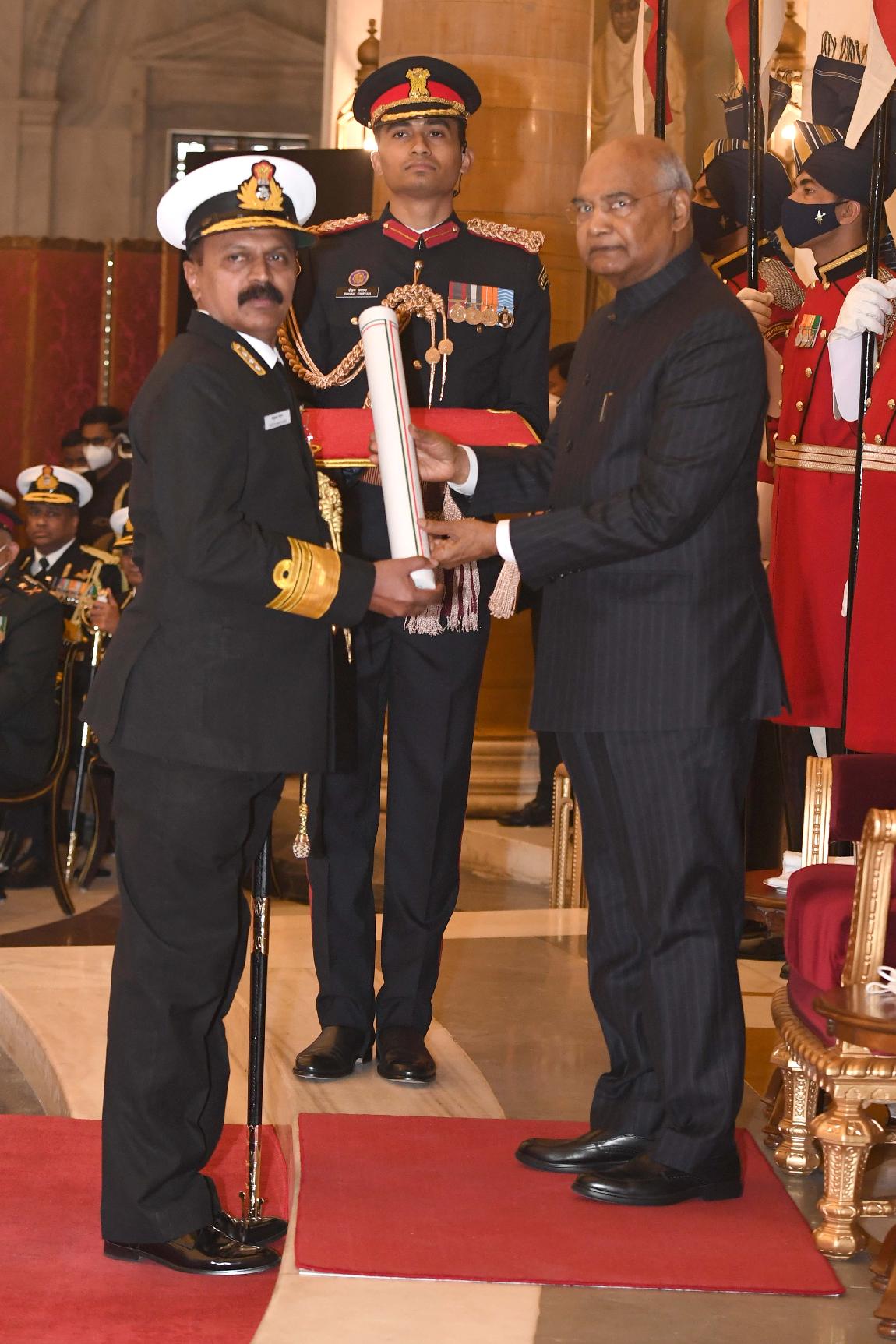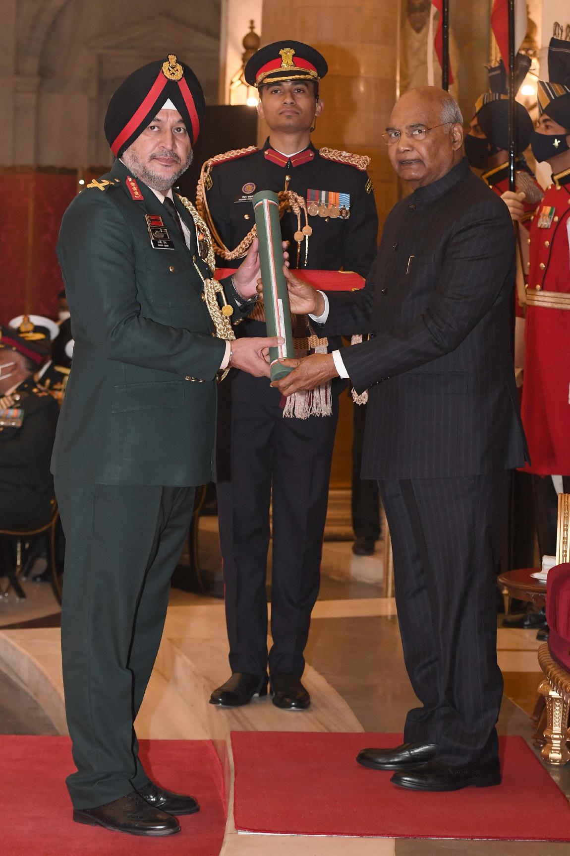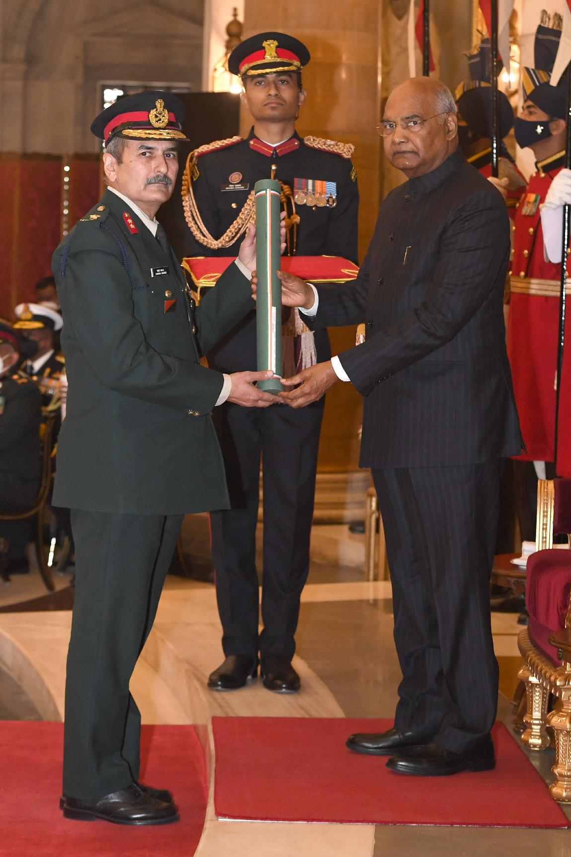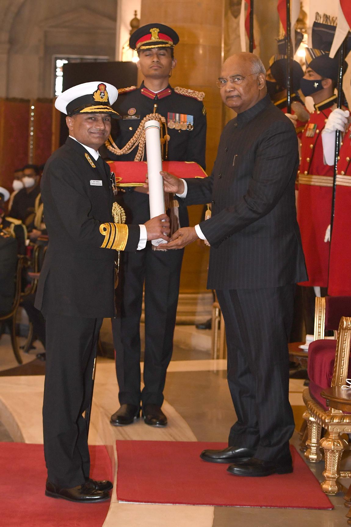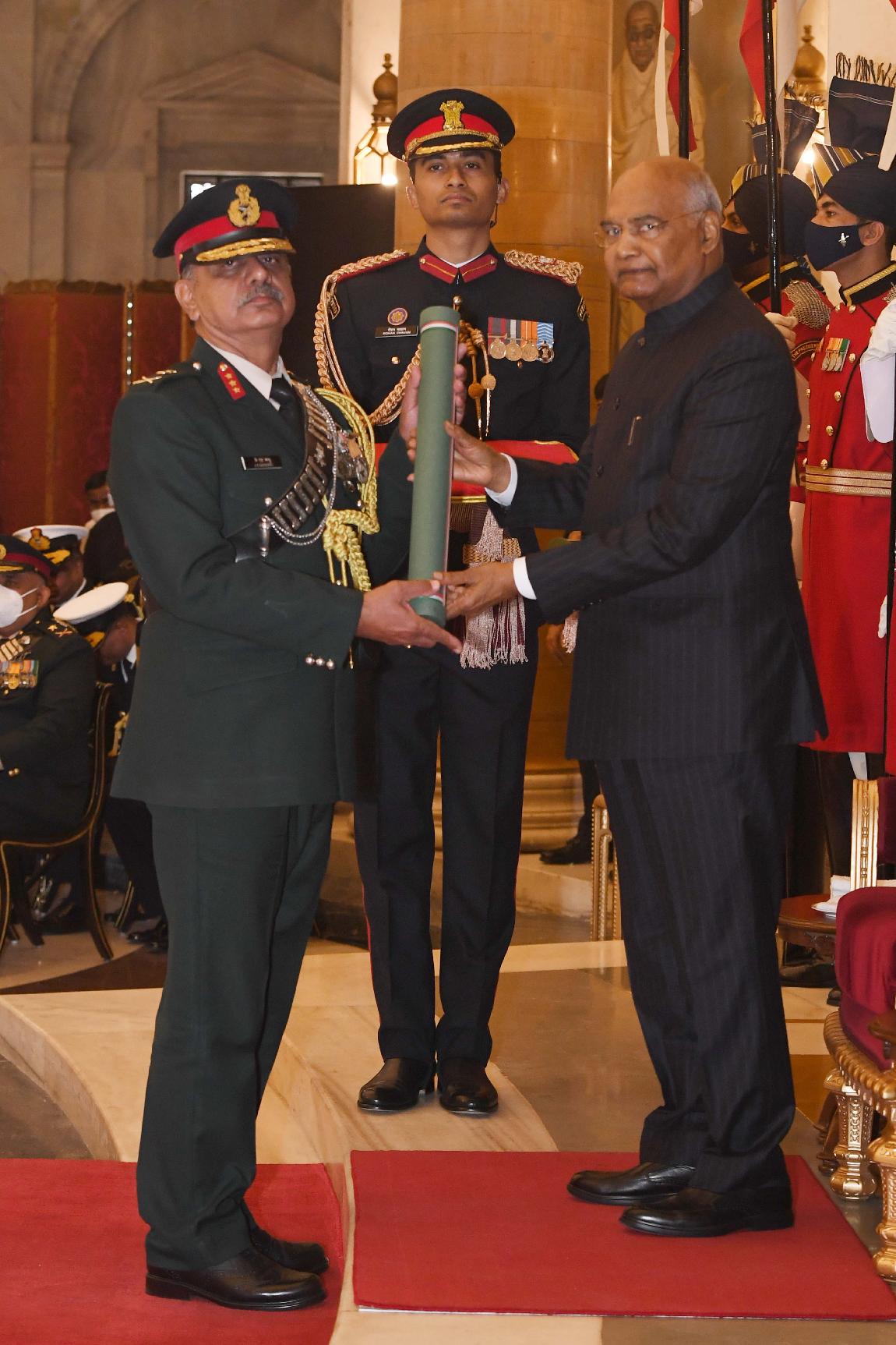 | Caption: | The President of India, Shri Ram Nath Kovind presents the Gallantry Awards and Distinguished Service Decorations for the year 2020, at the Defence Investiture Ceremony-I, at Rashtrapati Bhavan on November 22, 2021. |
