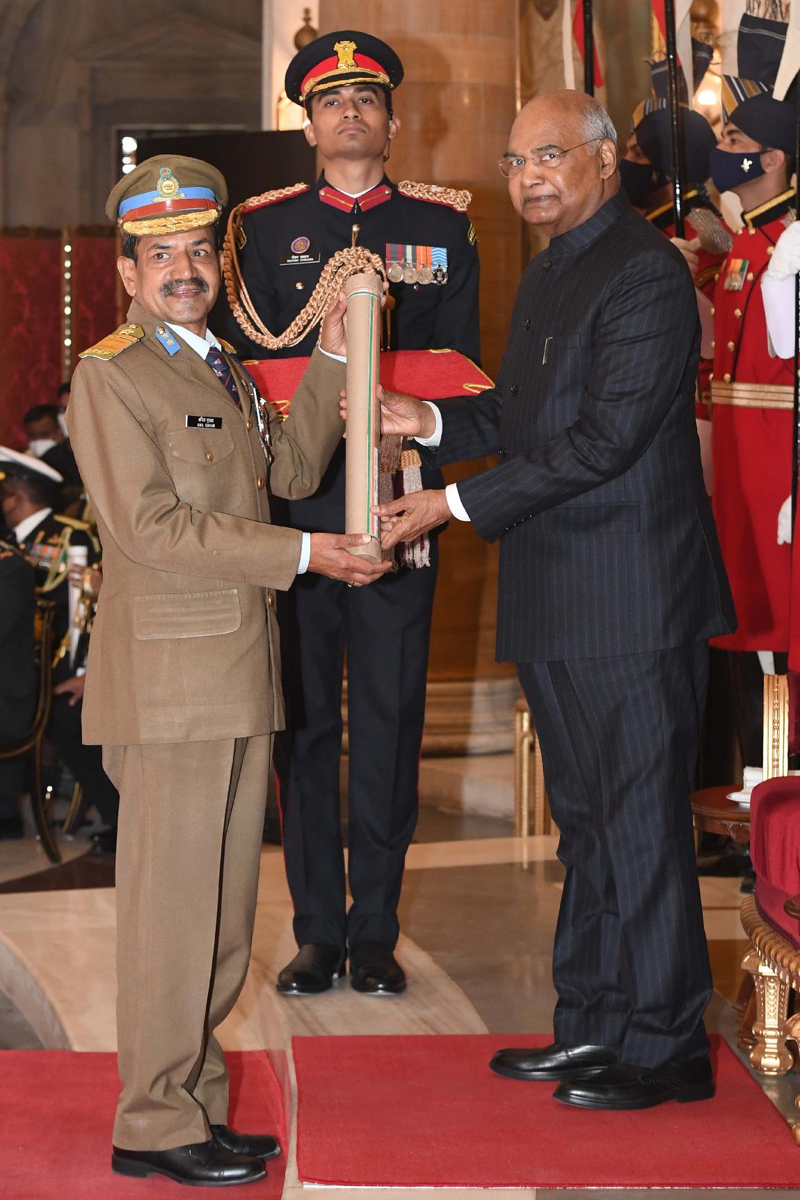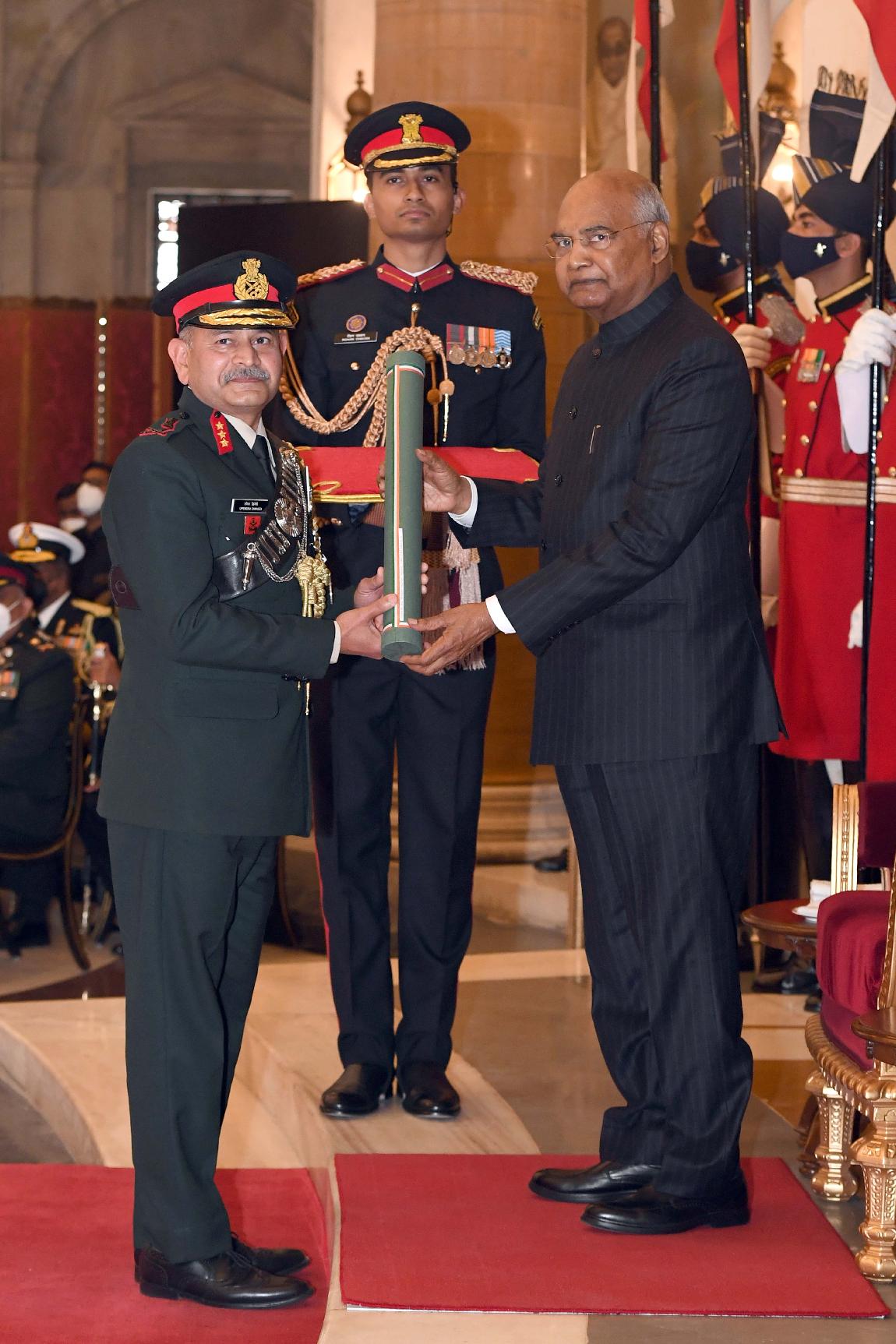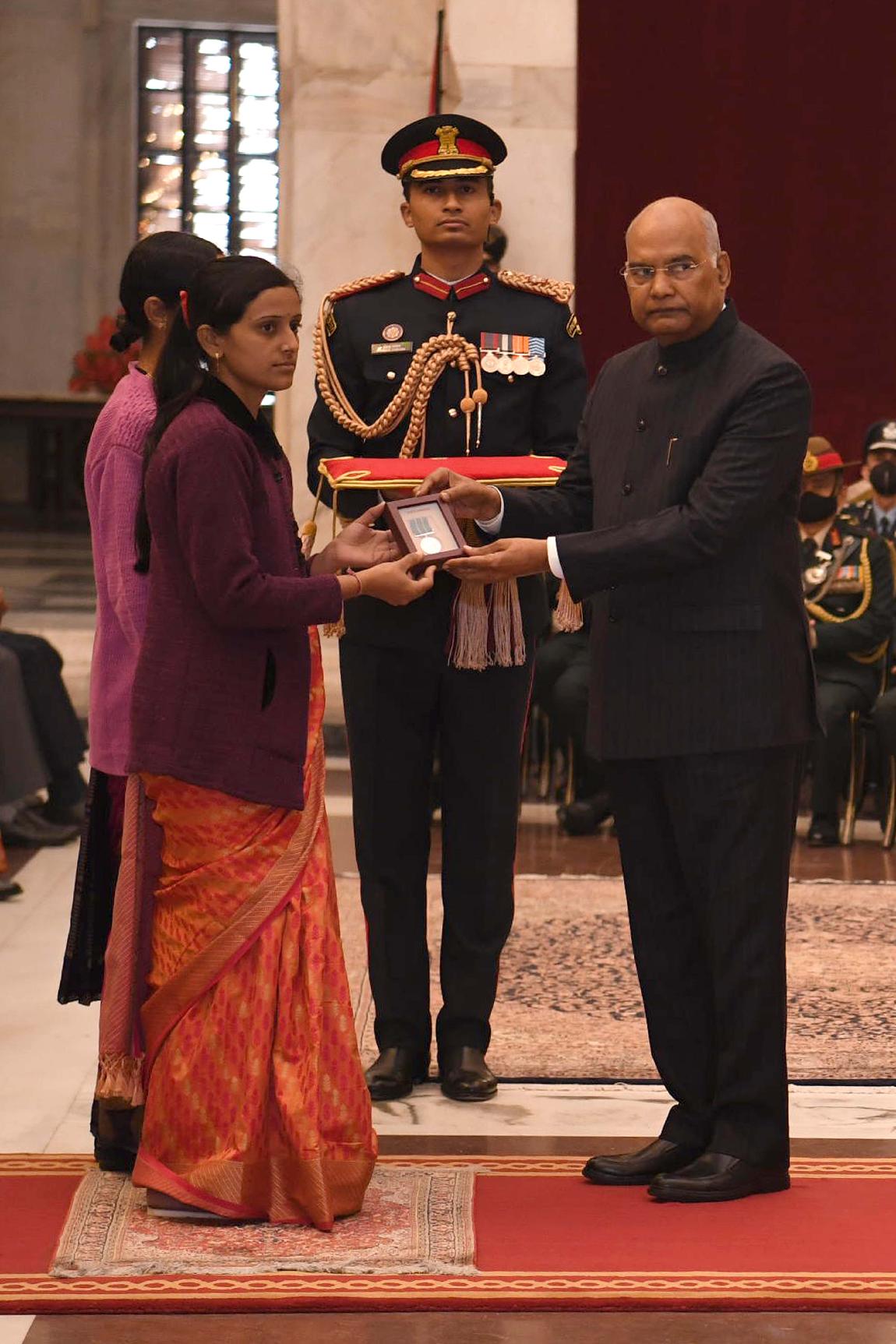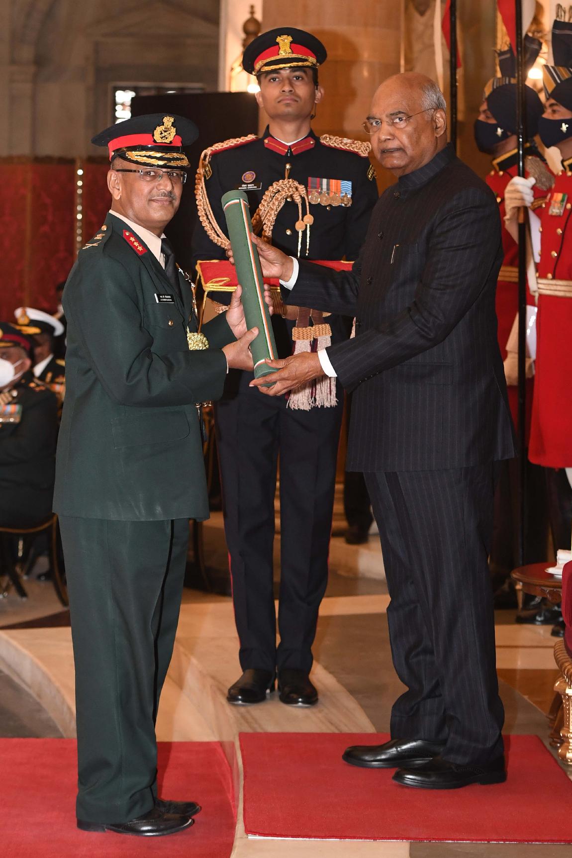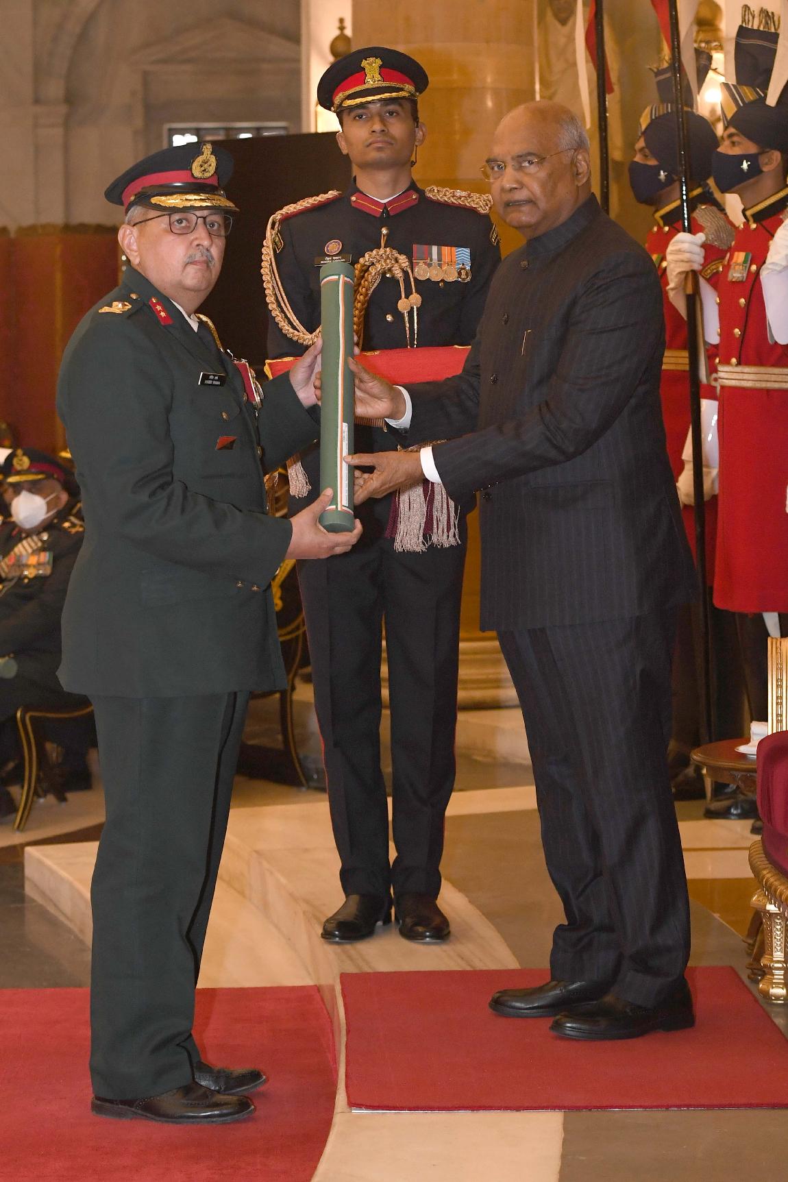 | Caption: | The President of India, Shri Ram Nath Kovind presents the Gallantry Awards and Distinguished Service Decorations for the year 2020, at the Defence Investiture Ceremony-I, at Rashtrapati Bhavan on November 22, 2021. |