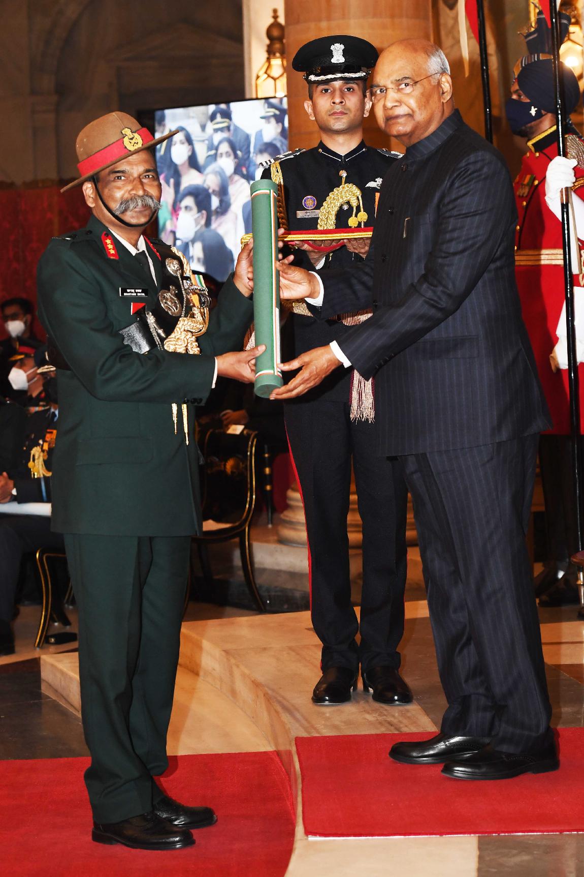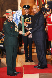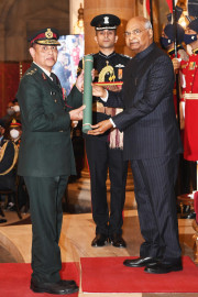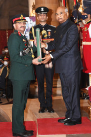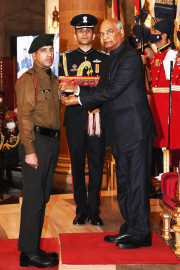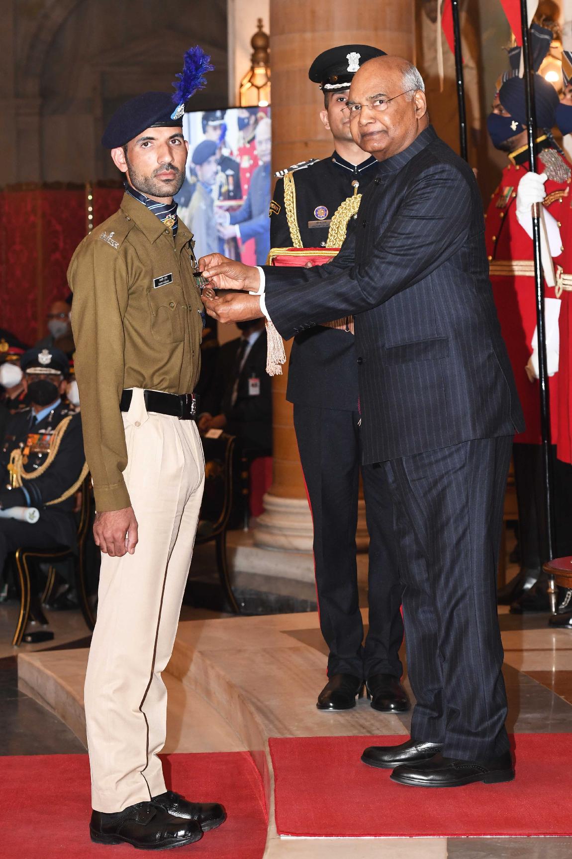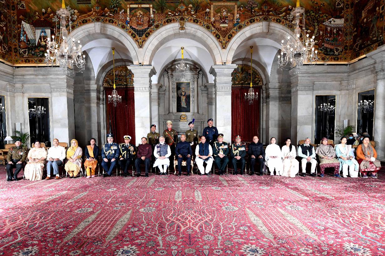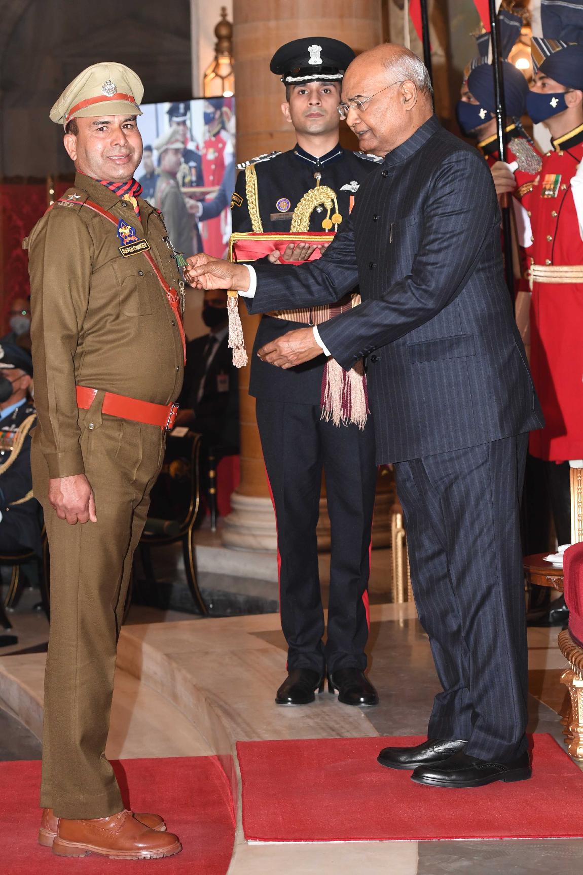 | Caption: | The President of India, Shri Ram Nath Kovind presents the Gallantry Awards and Distinguished Service Decorations for the year 2020, at the Defence Investiture Ceremony-II, at Rashtrapati Bhavan on November 22, 2021. |