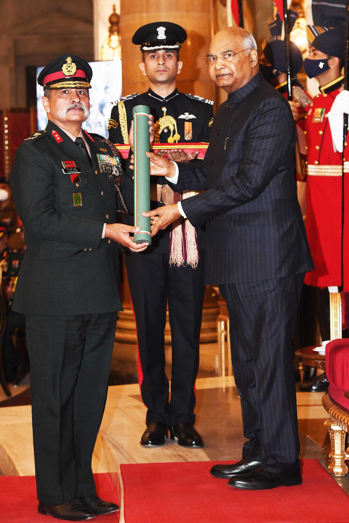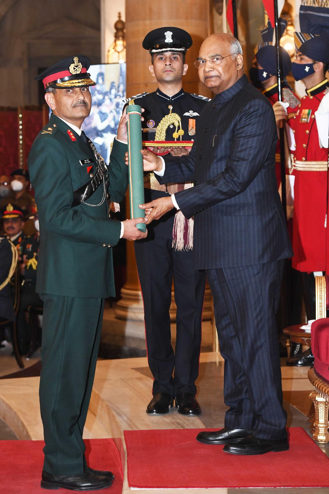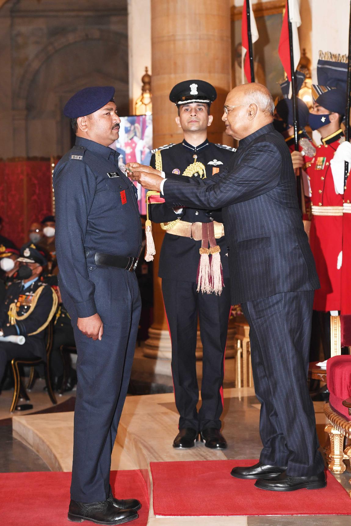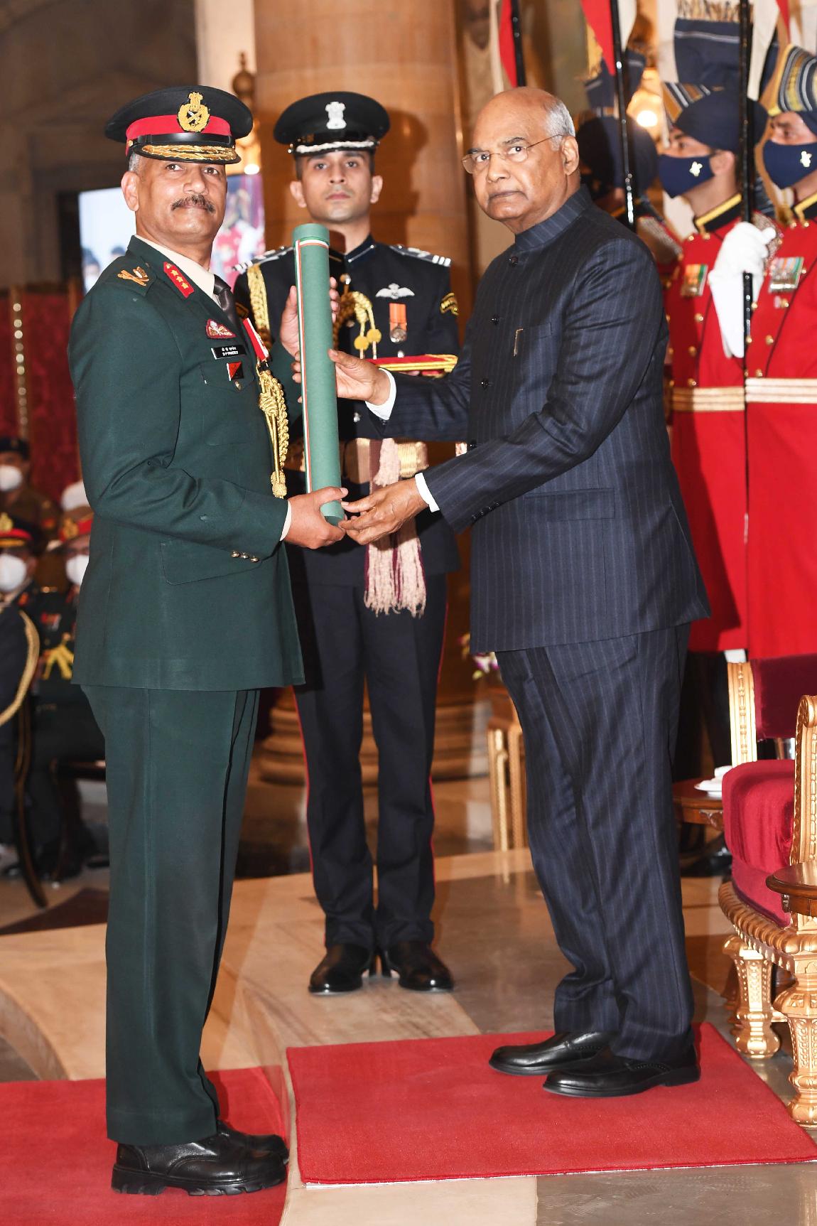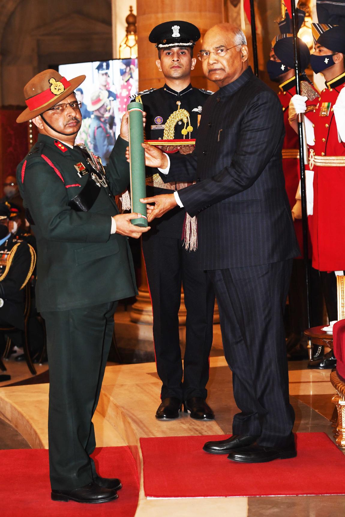 | Caption: | The President of India, Shri Ram Nath Kovind presents the Gallantry Awards and Distinguished Service Decorations for the year 2020, at the Defence Investiture Ceremony-II, at Rashtrapati Bhavan on November 22, 2021. |