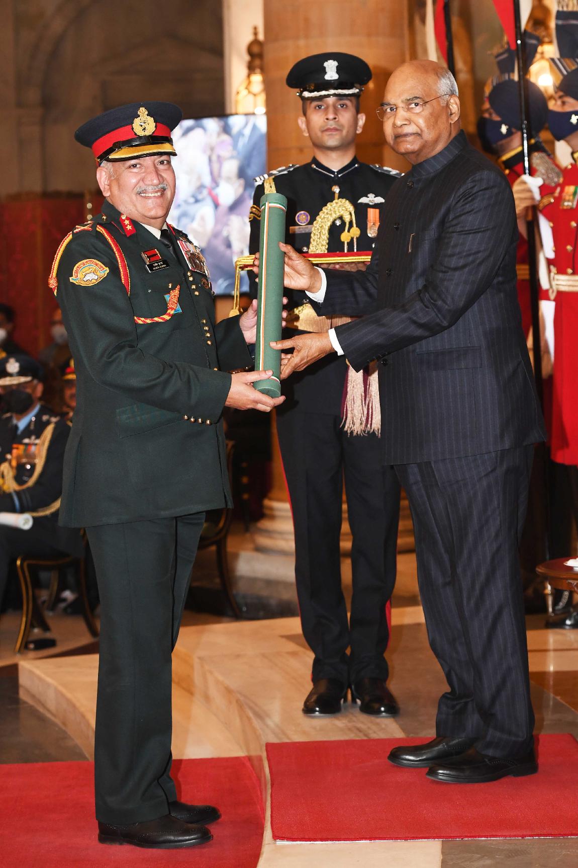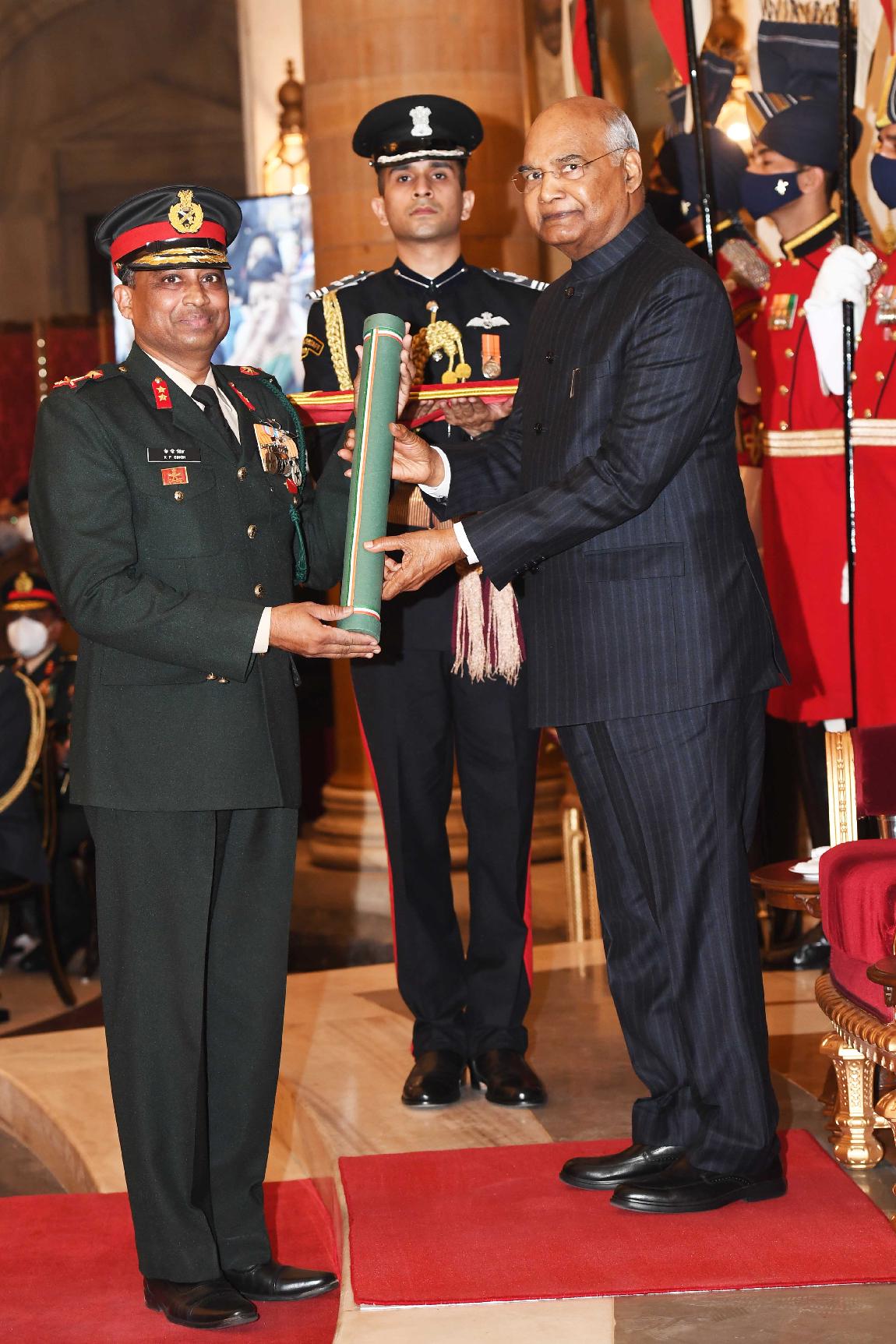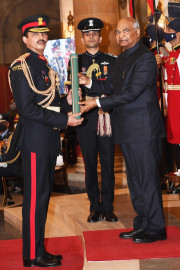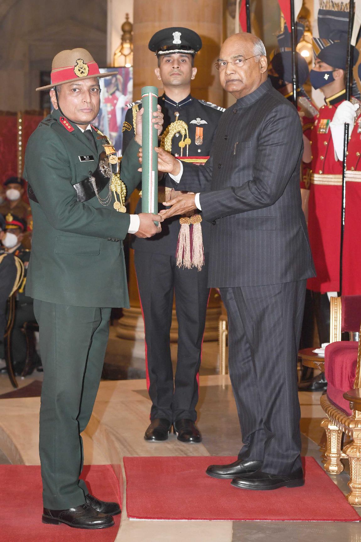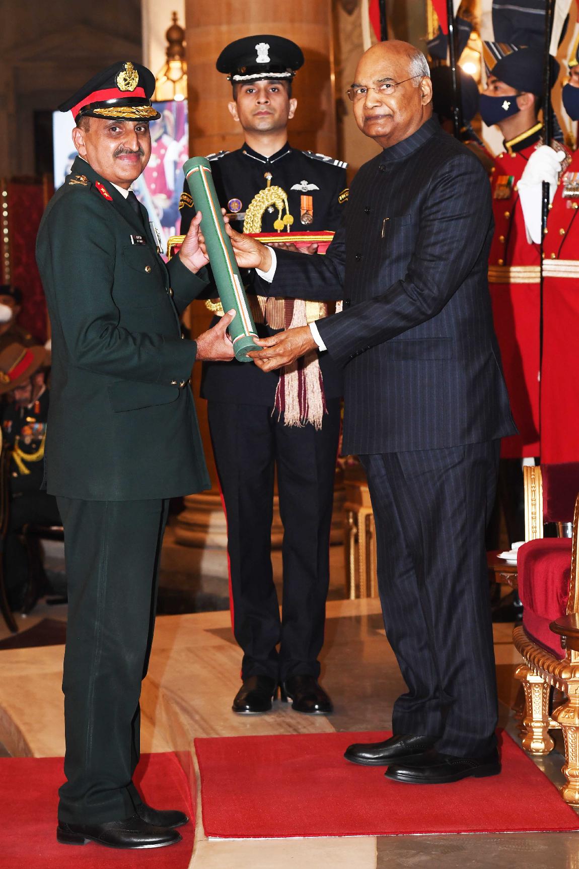 | Caption: | The President of India, Shri Ram Nath Kovind presents the Gallantry Awards and Distinguished Service Decorations for the year 2020, at the Defence Investiture Ceremony-II, at Rashtrapati Bhavan on November 22, 2021. |