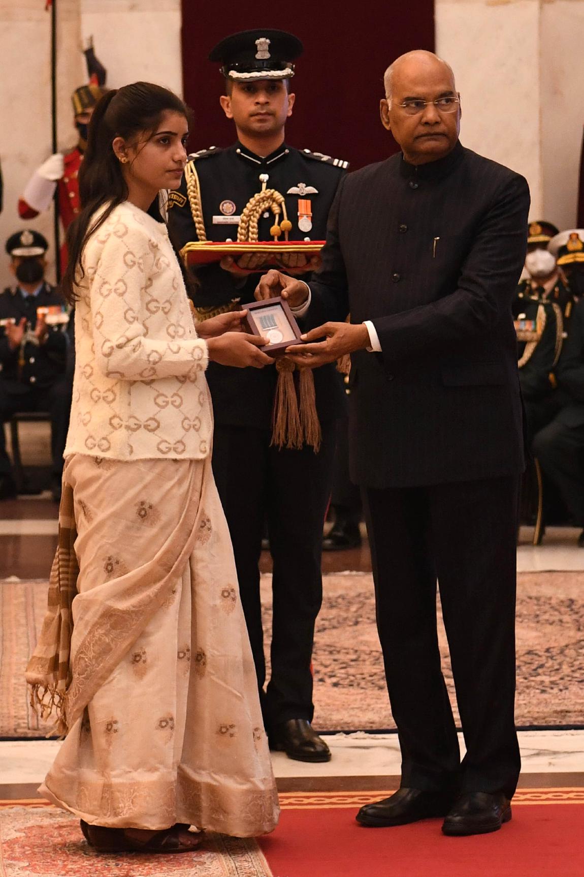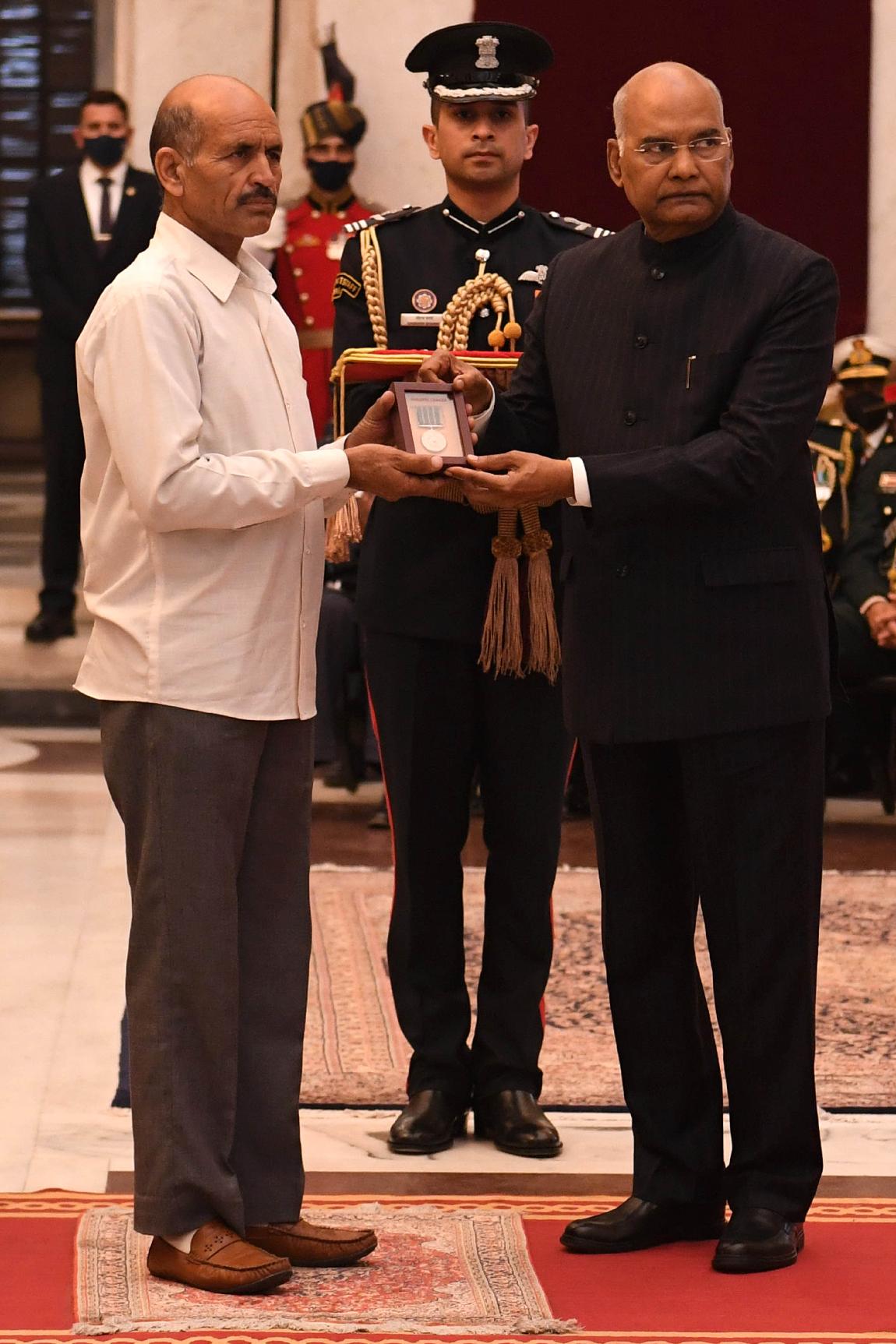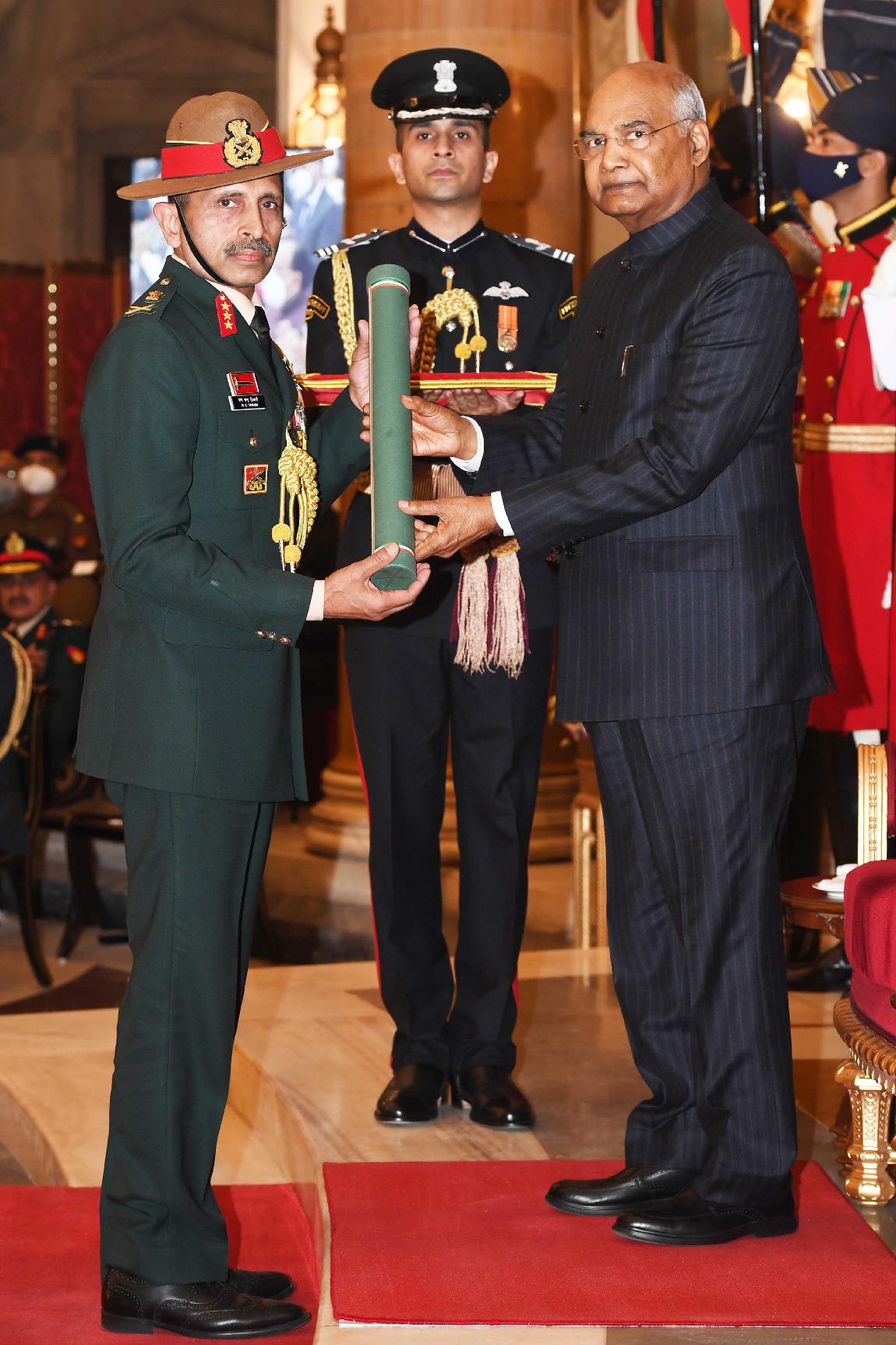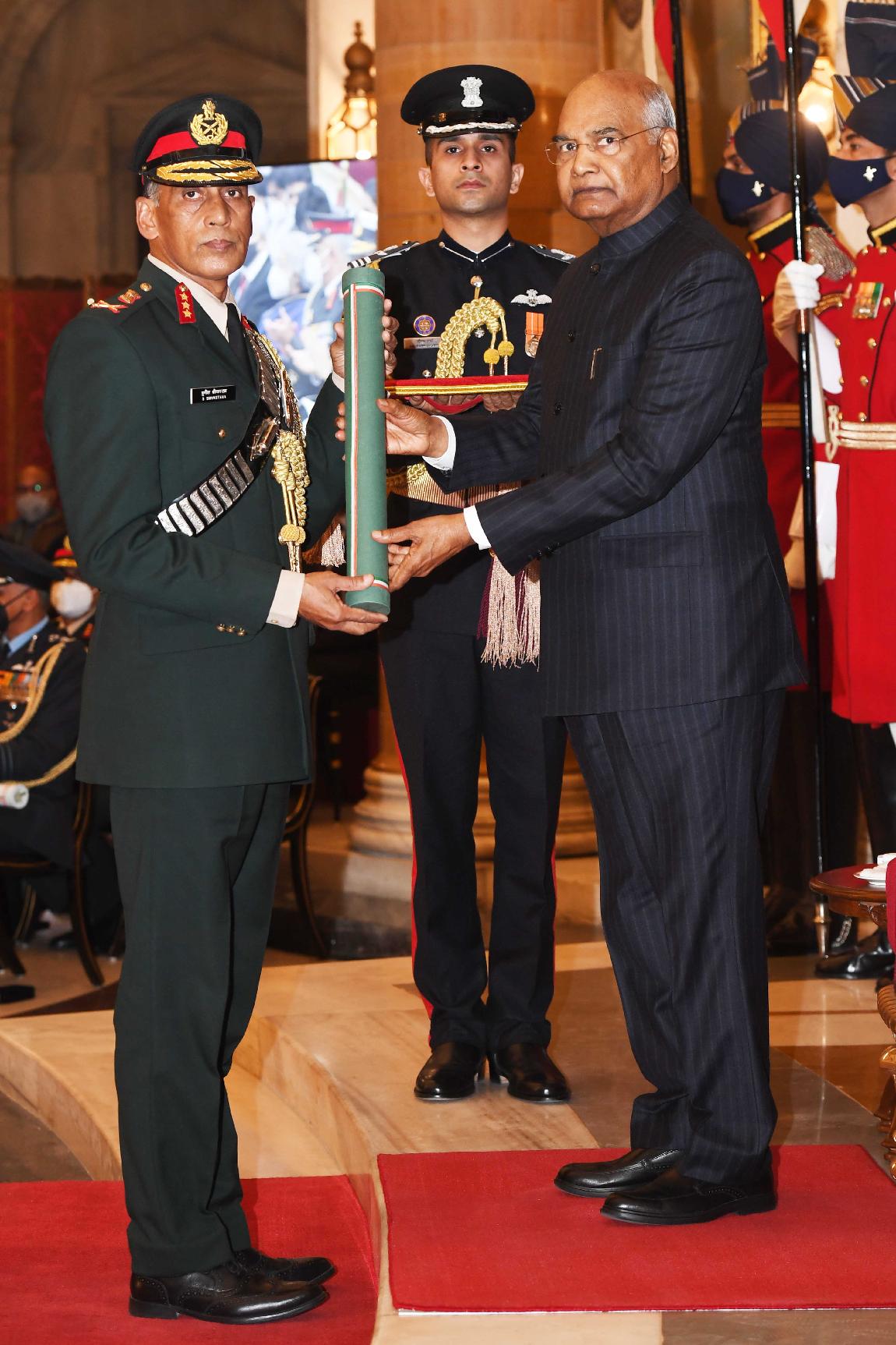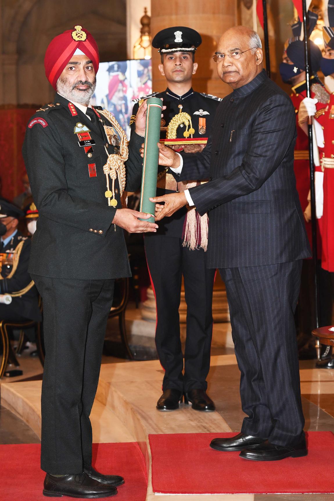 | Caption: | The President of India, Shri Ram Nath Kovind presents the Gallantry Awards and Distinguished Service Decorations for the year 2020, at the Defence Investiture Ceremony-II, at Rashtrapati Bhavan on November 22, 2021. |