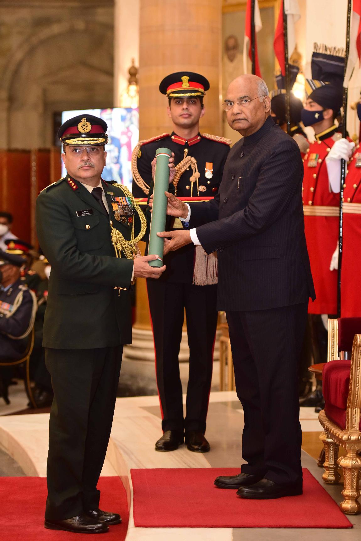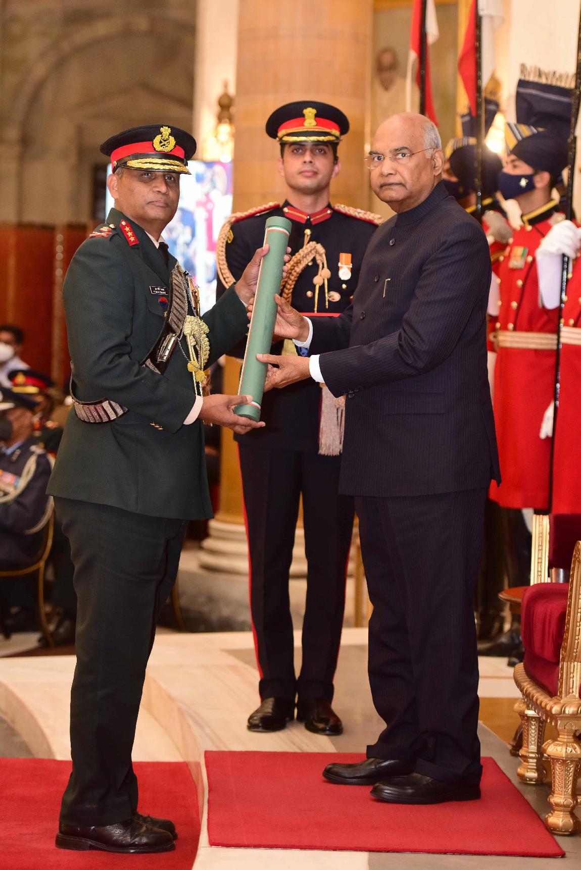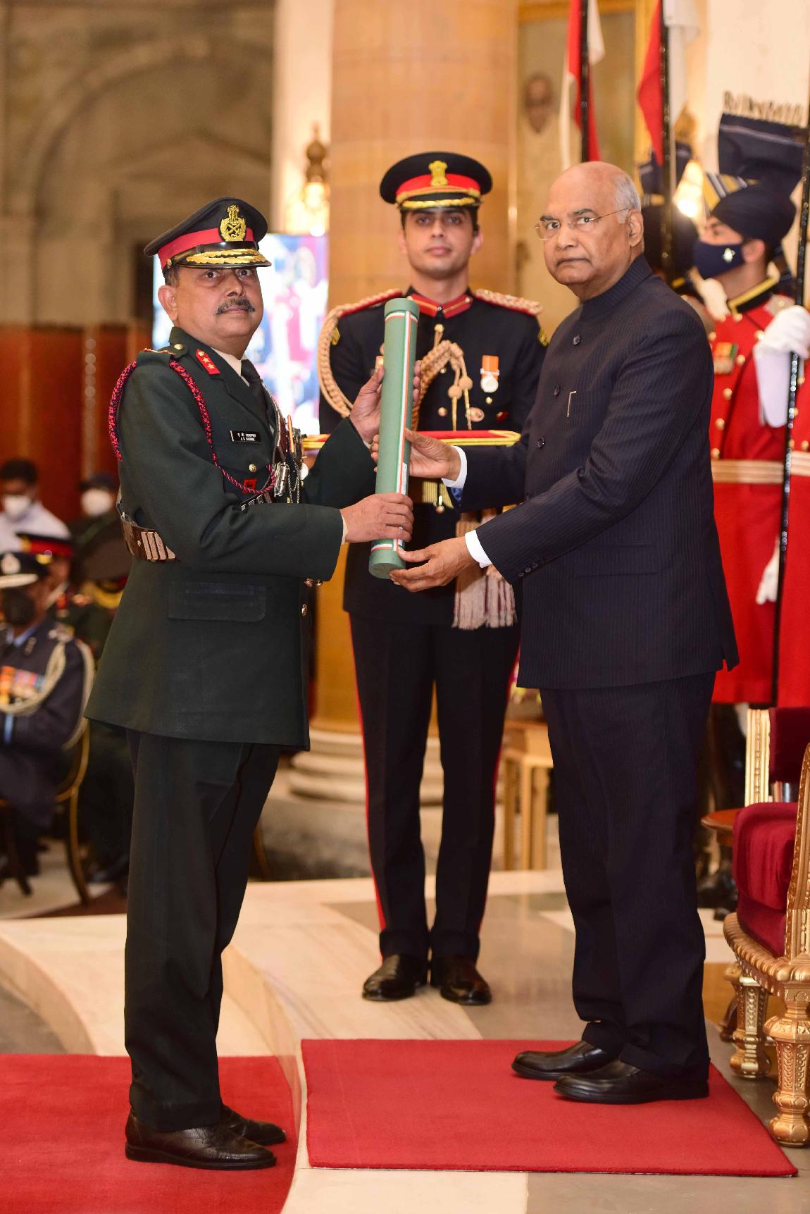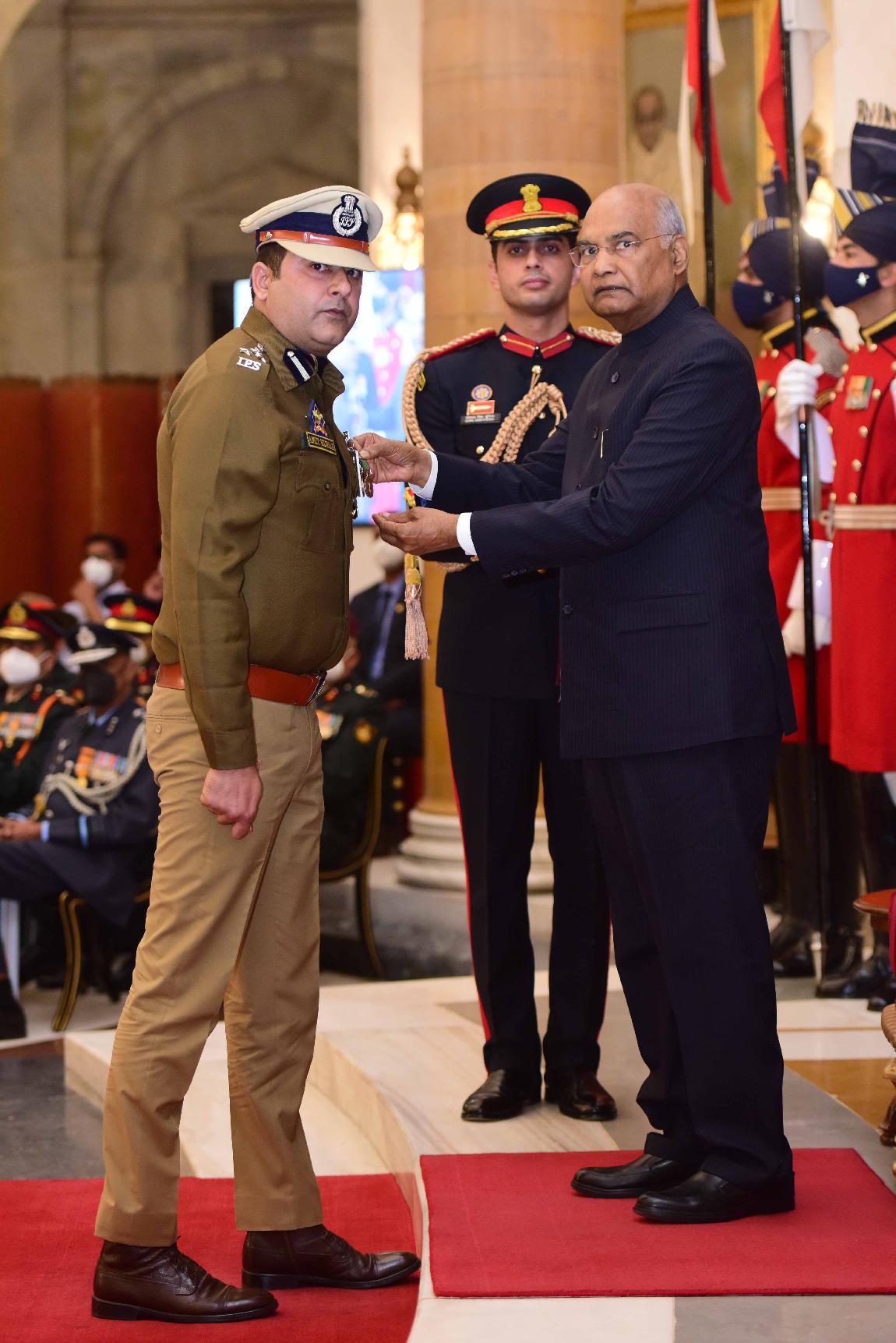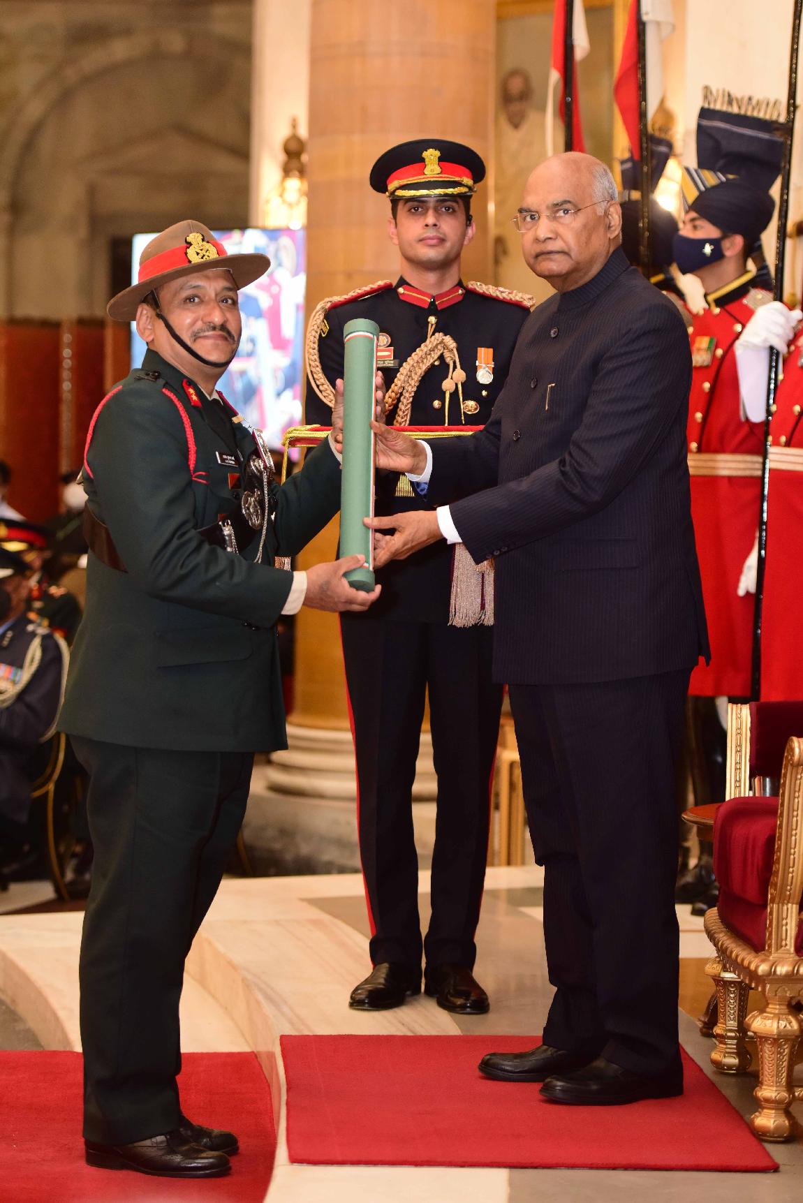 | Caption: | The President of India, Shri Ram Nath Kovind presents the Gallantry Awards and Distinguished Service Decorations for the year 2021, at the Defence Investiture Ceremony-II, at Rashtrapati Bhavan on November 23, 2021. |