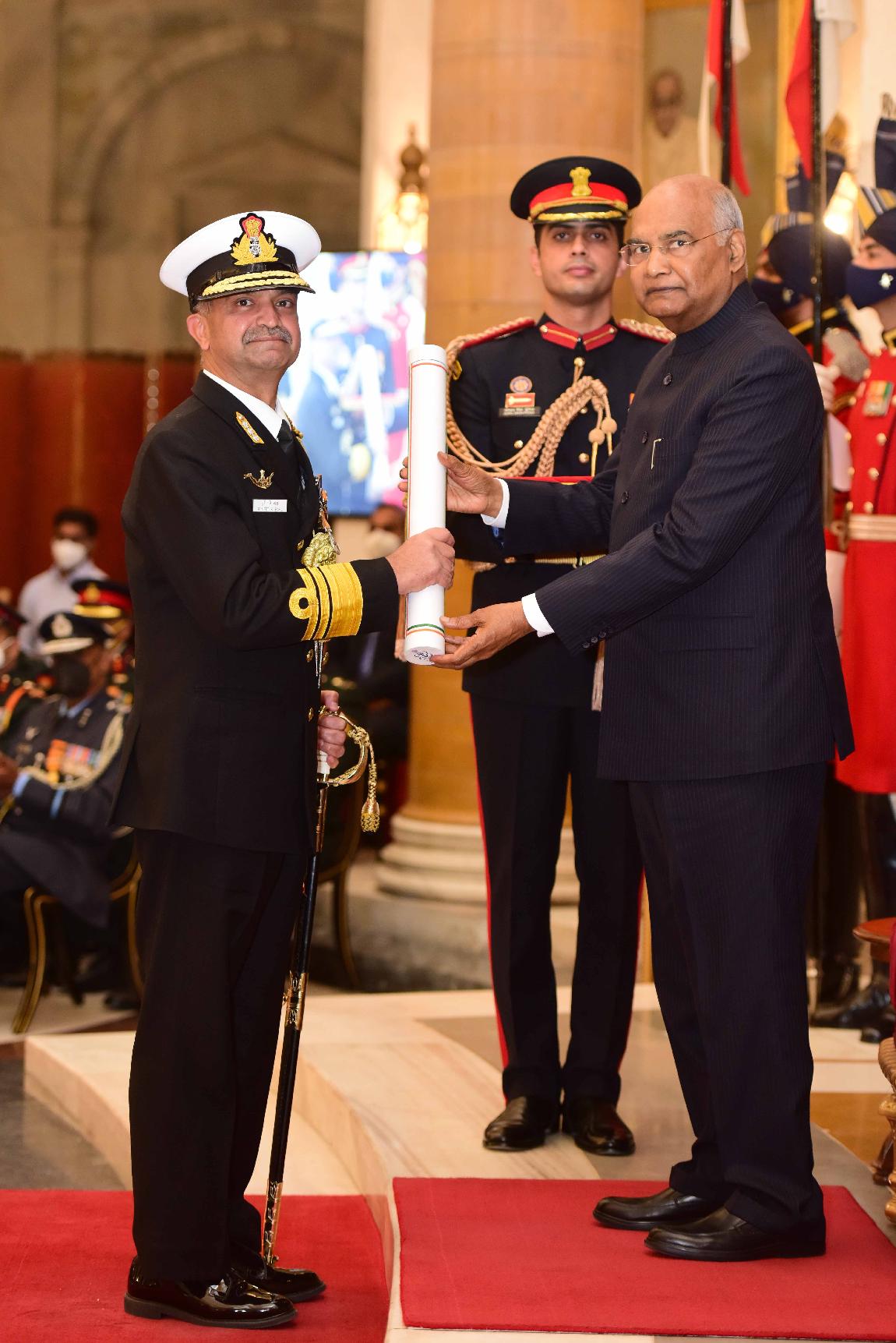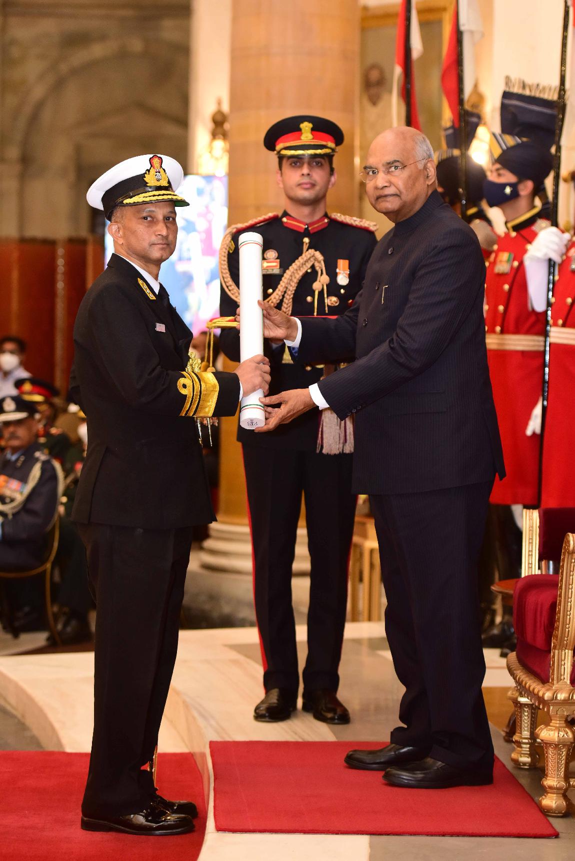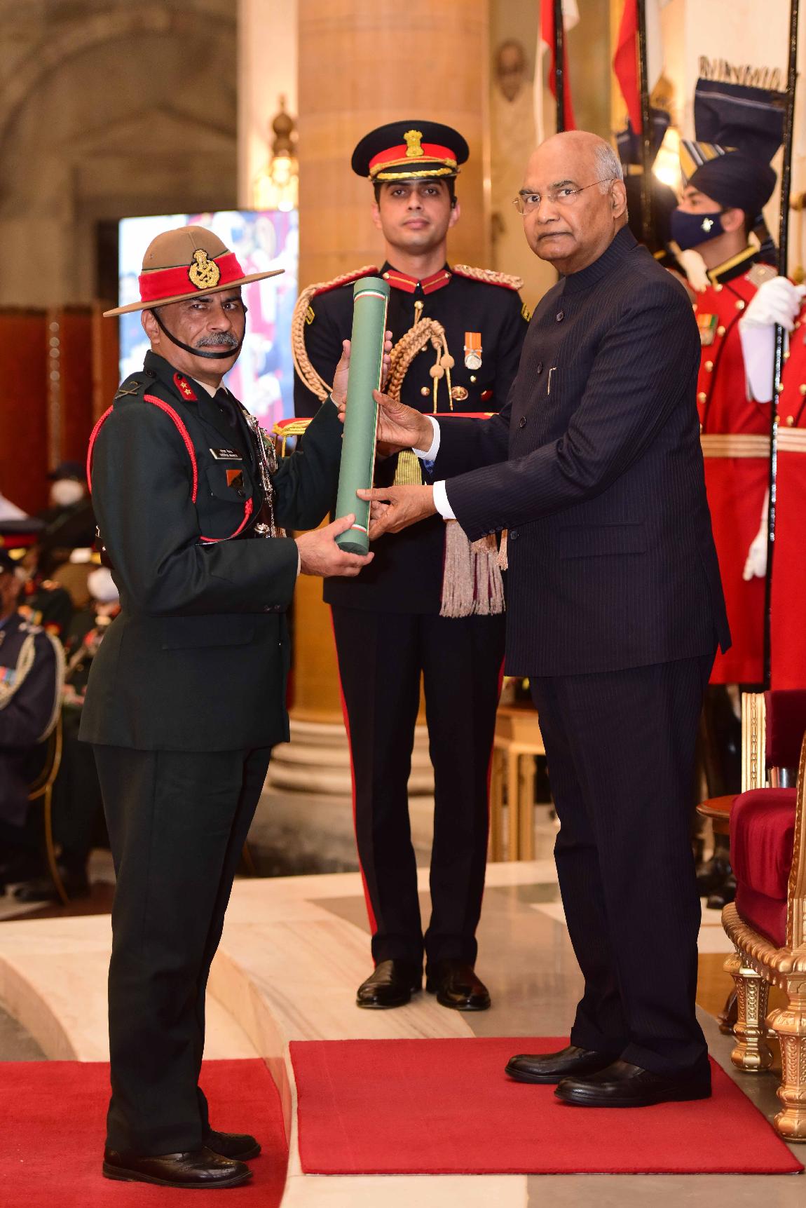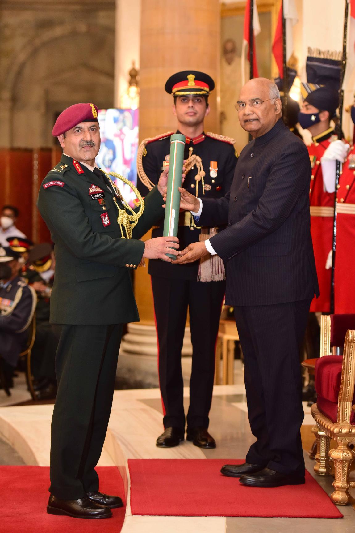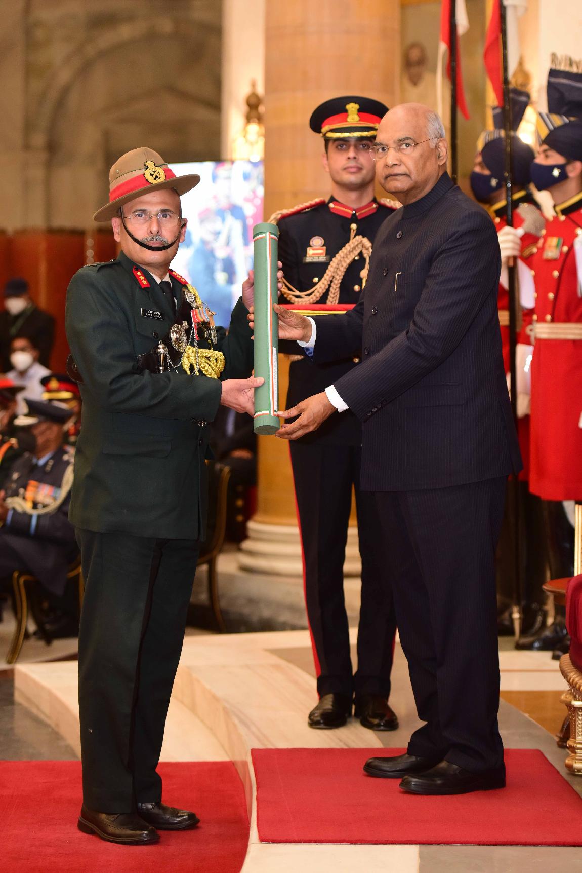 | Caption: | The President of India, Shri Ram Nath Kovind presents the Gallantry Awards and Distinguished Service Decorations for the year 2021, at the Defence Investiture Ceremony-II, at Rashtrapati Bhavan on November 23, 2021. |