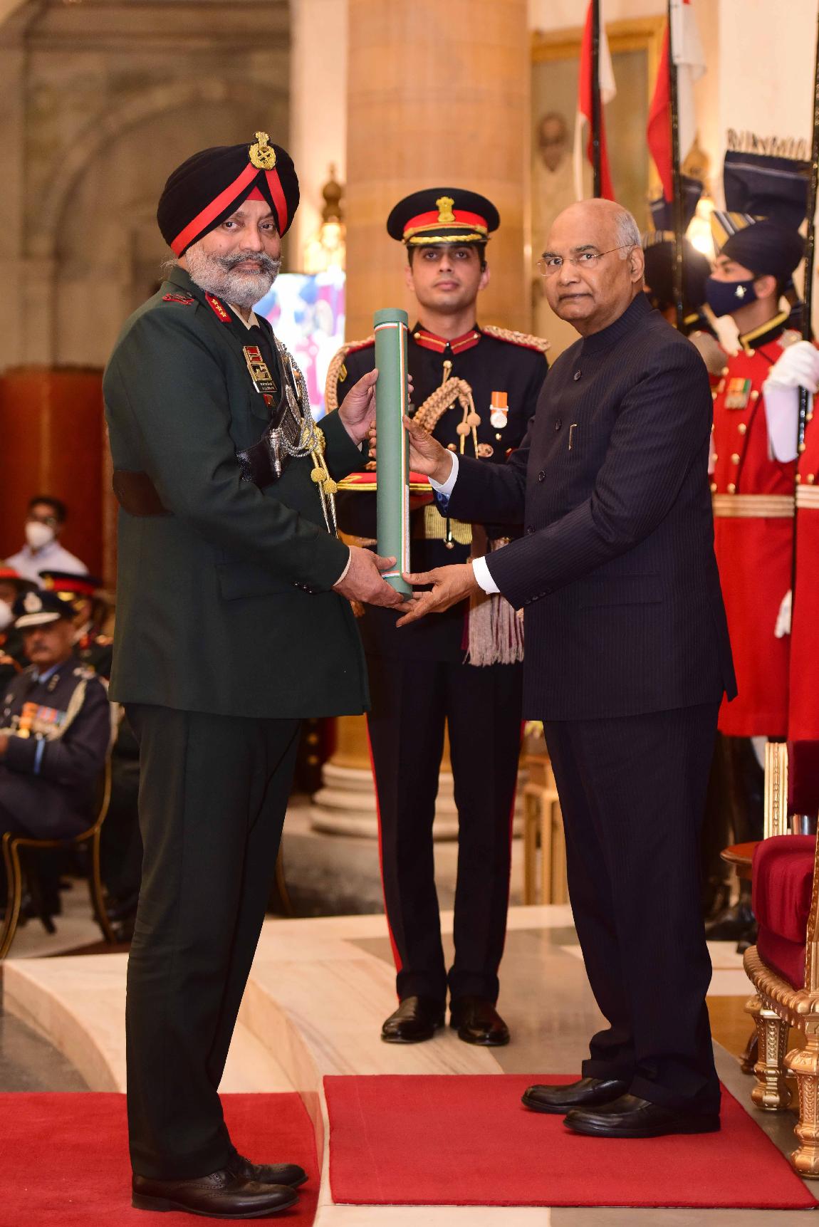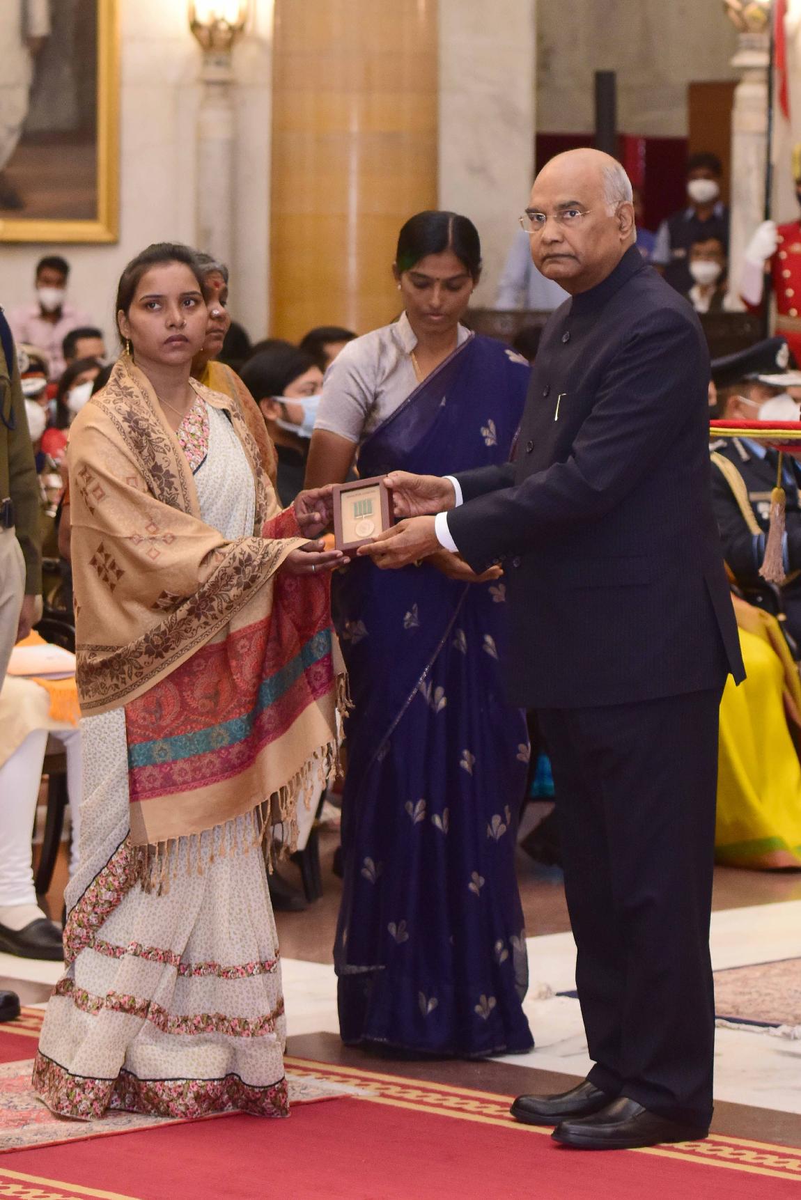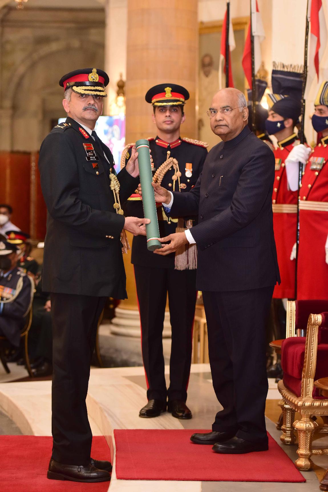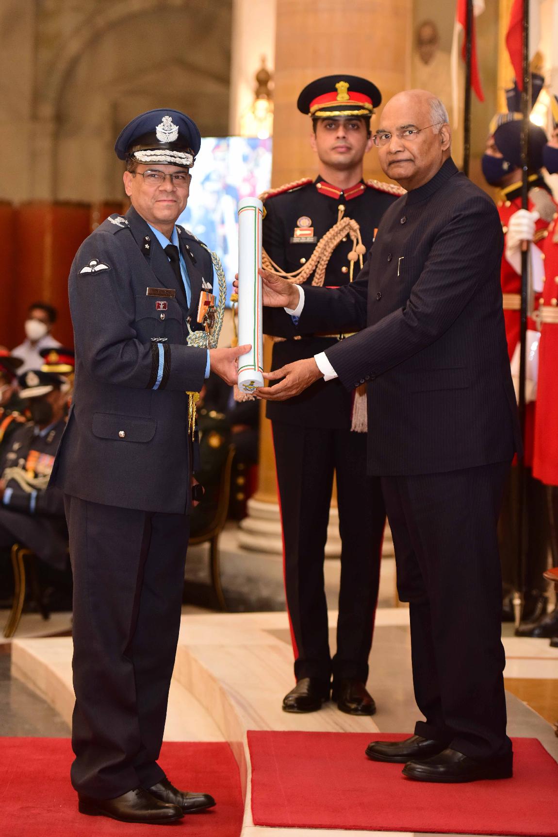 | Caption: | The President of India, Shri Ram Nath Kovind presents the Gallantry Awards and Distinguished Service Decorations for the year 2021, at the Defence Investiture Ceremony-II, at Rashtrapati Bhavan on November 23, 2021. |
