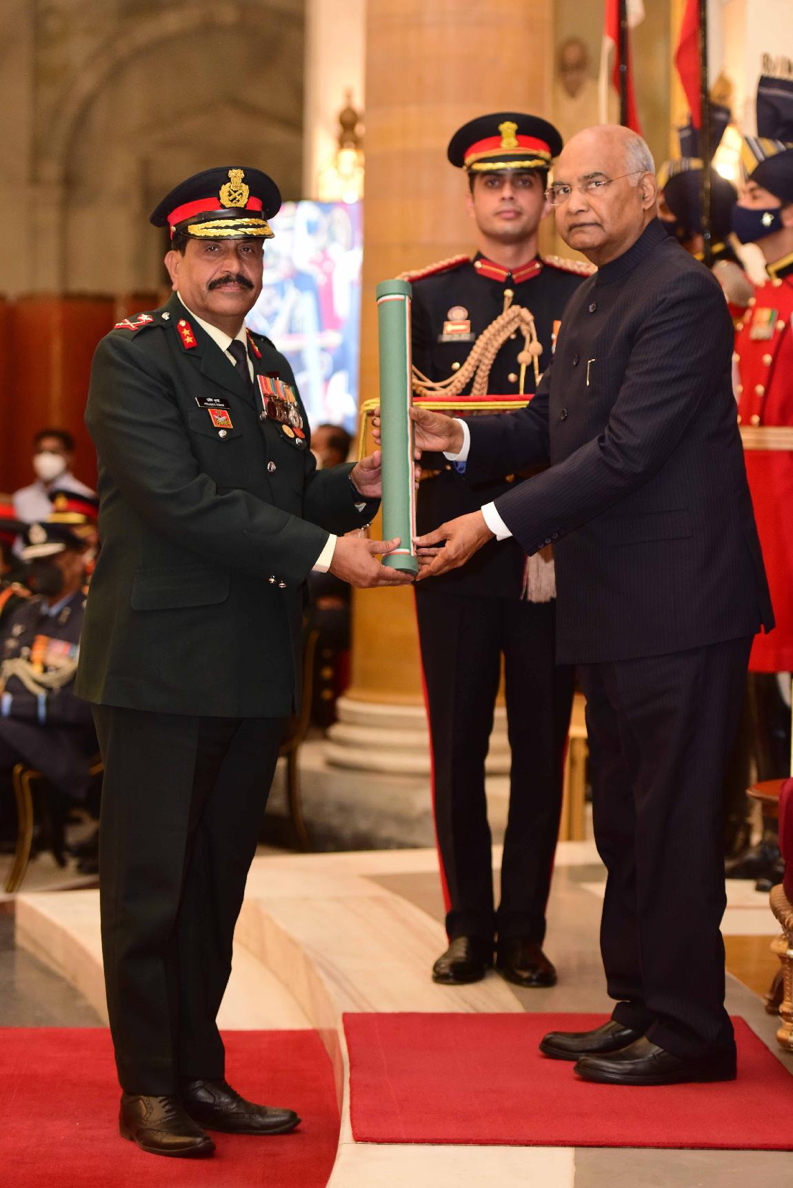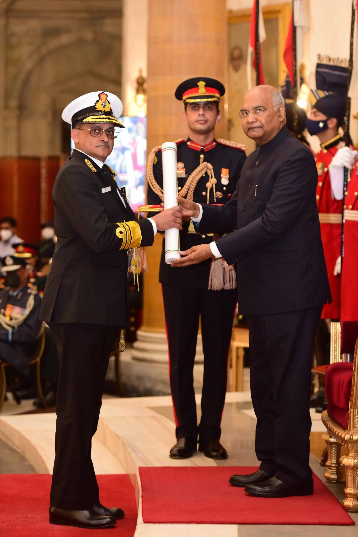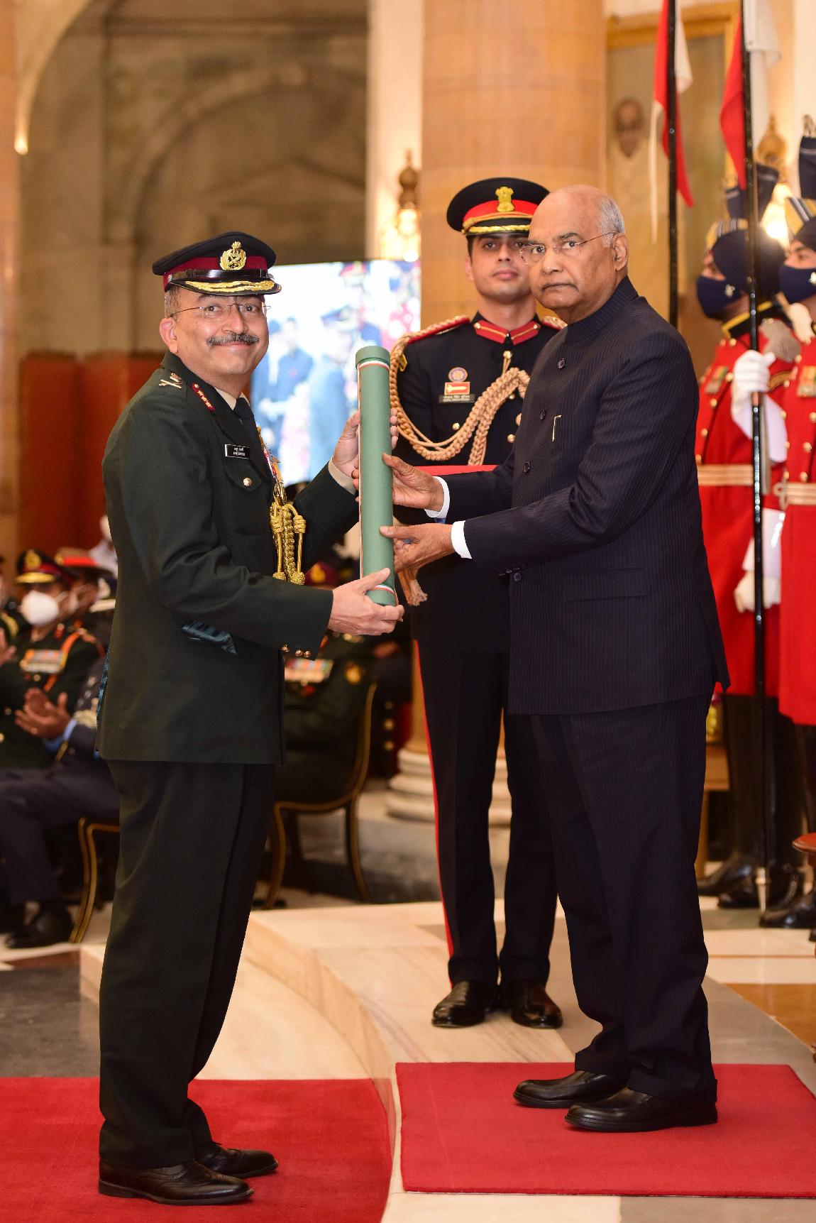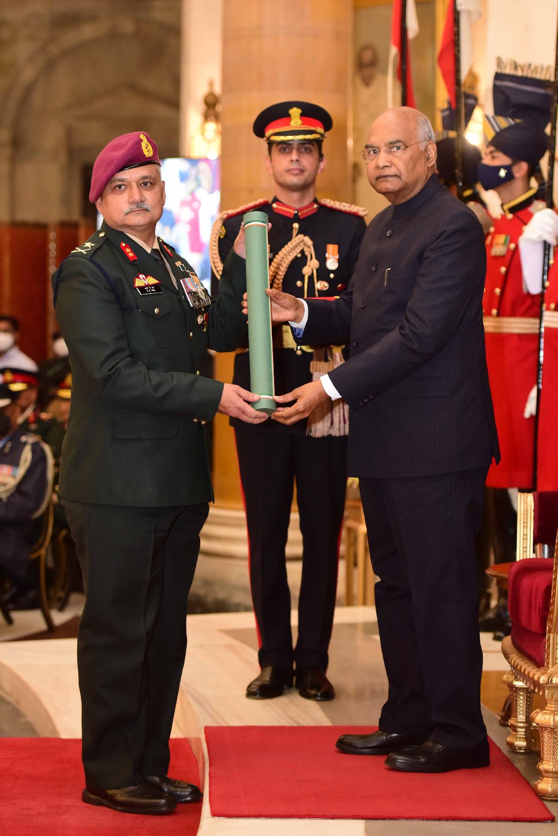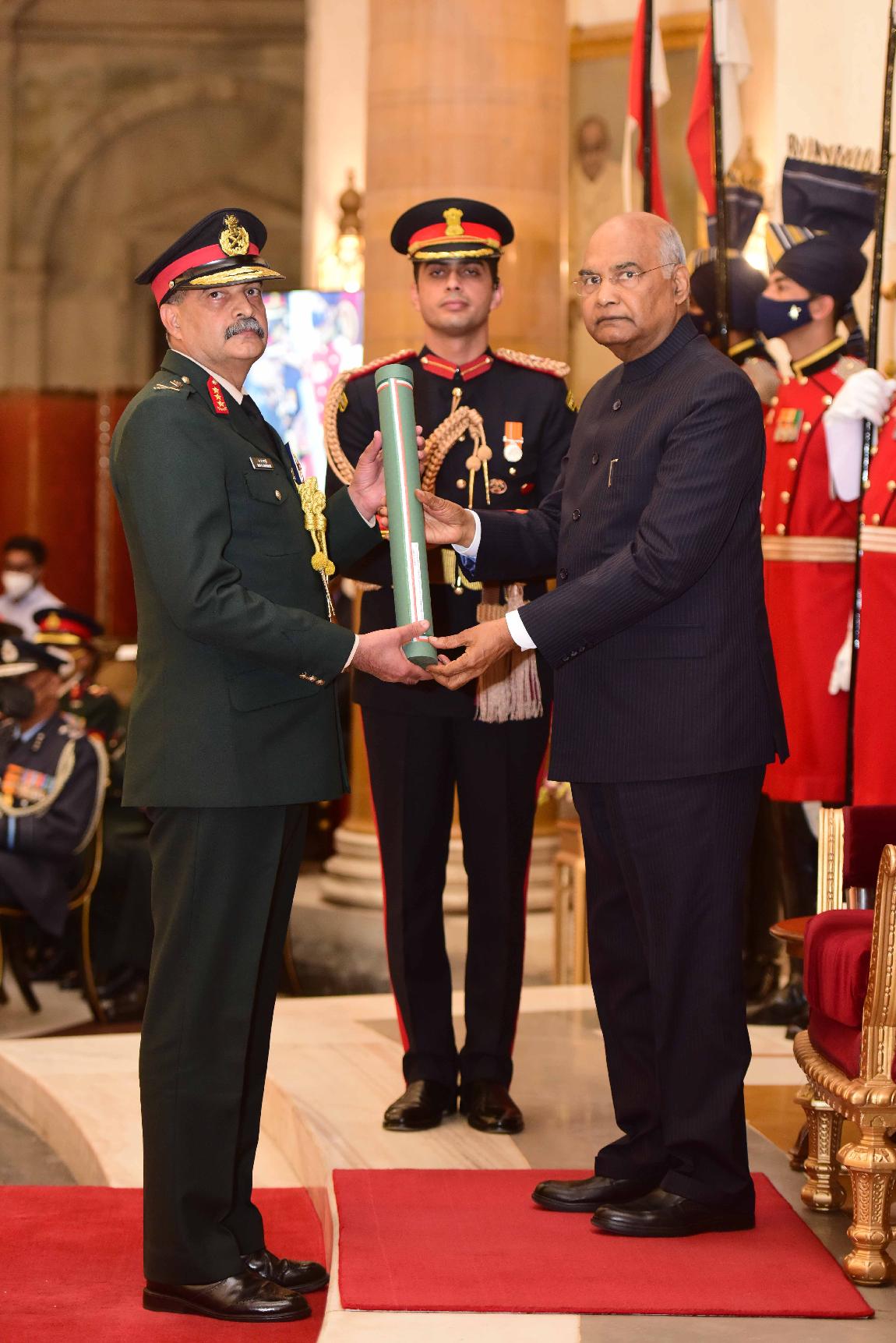 | Caption: | The President of India, Shri Ram Nath Kovind presents the Gallantry Awards and Distinguished Service Decorations for the year 2021, at the Defence Investiture Ceremony-II, at Rashtrapati Bhavan on November 23, 2021. |