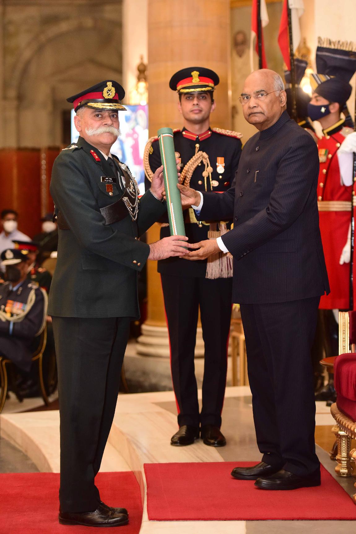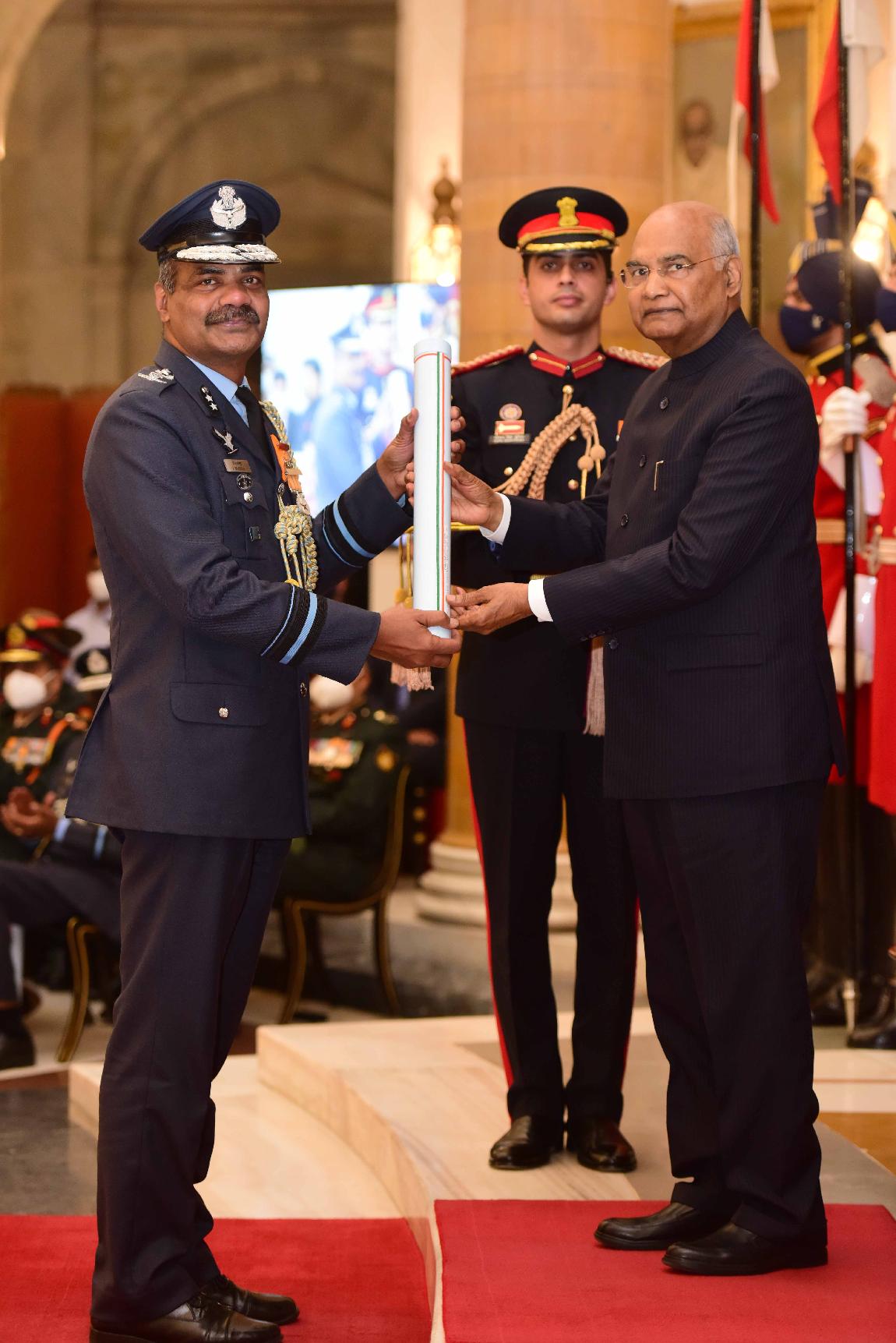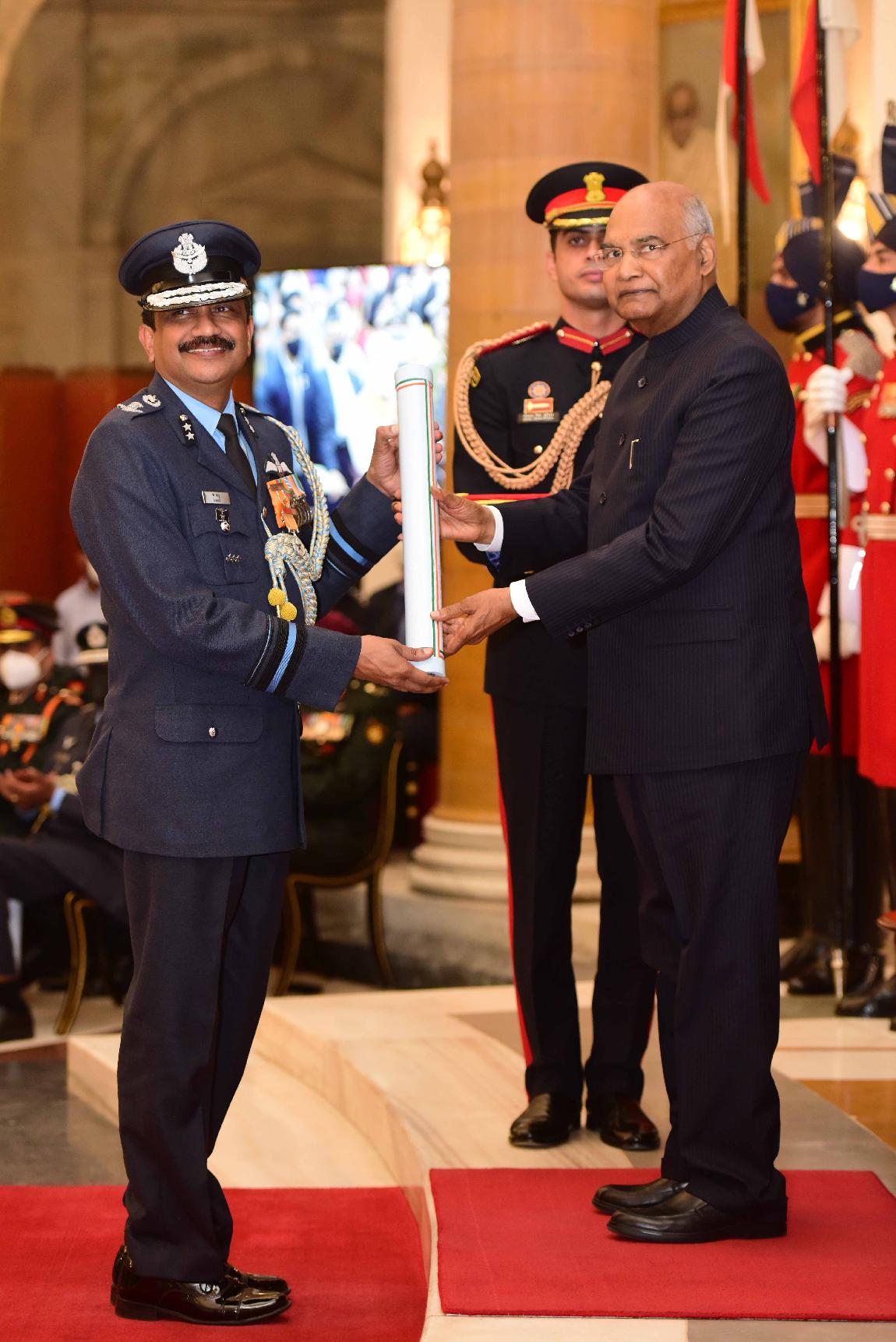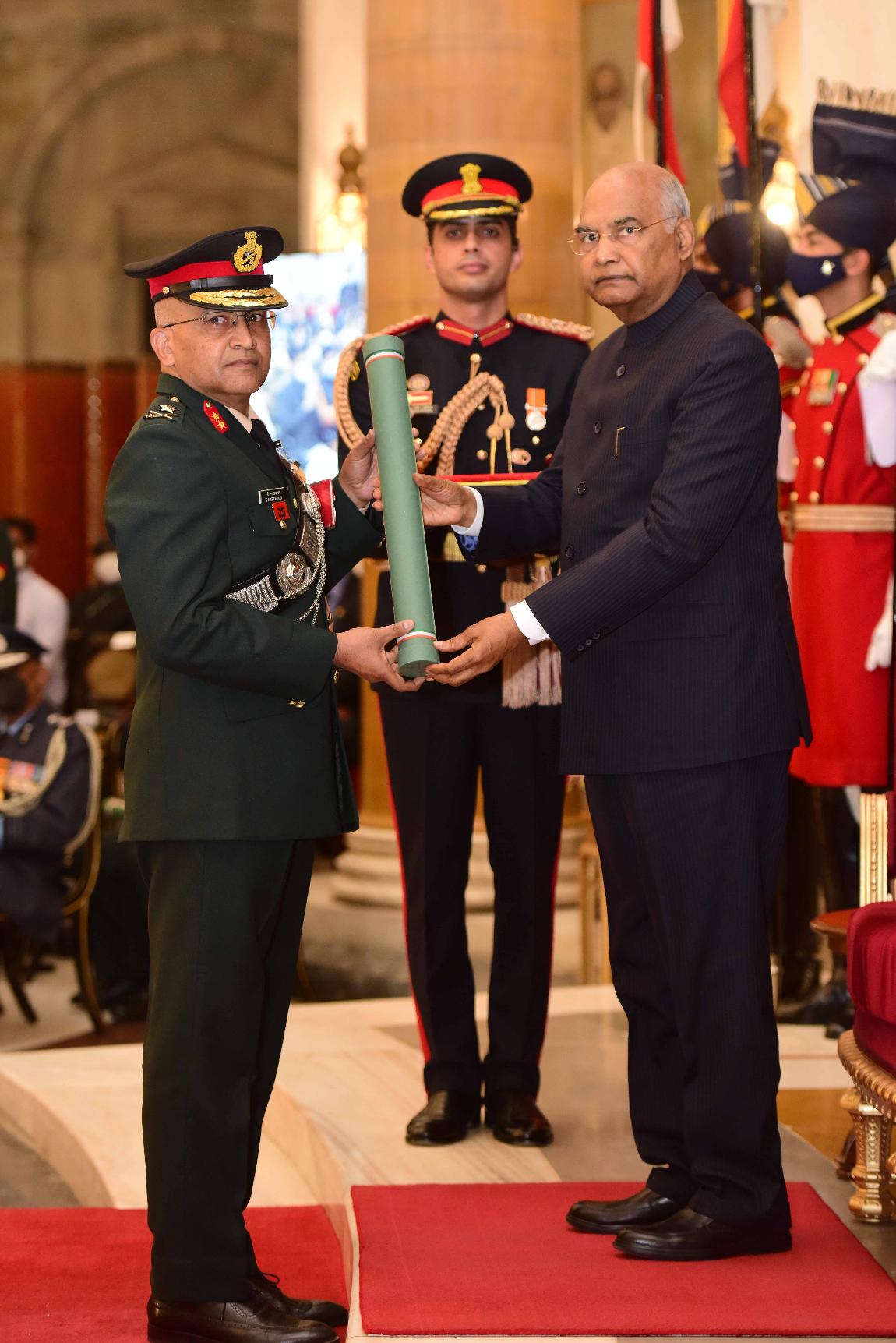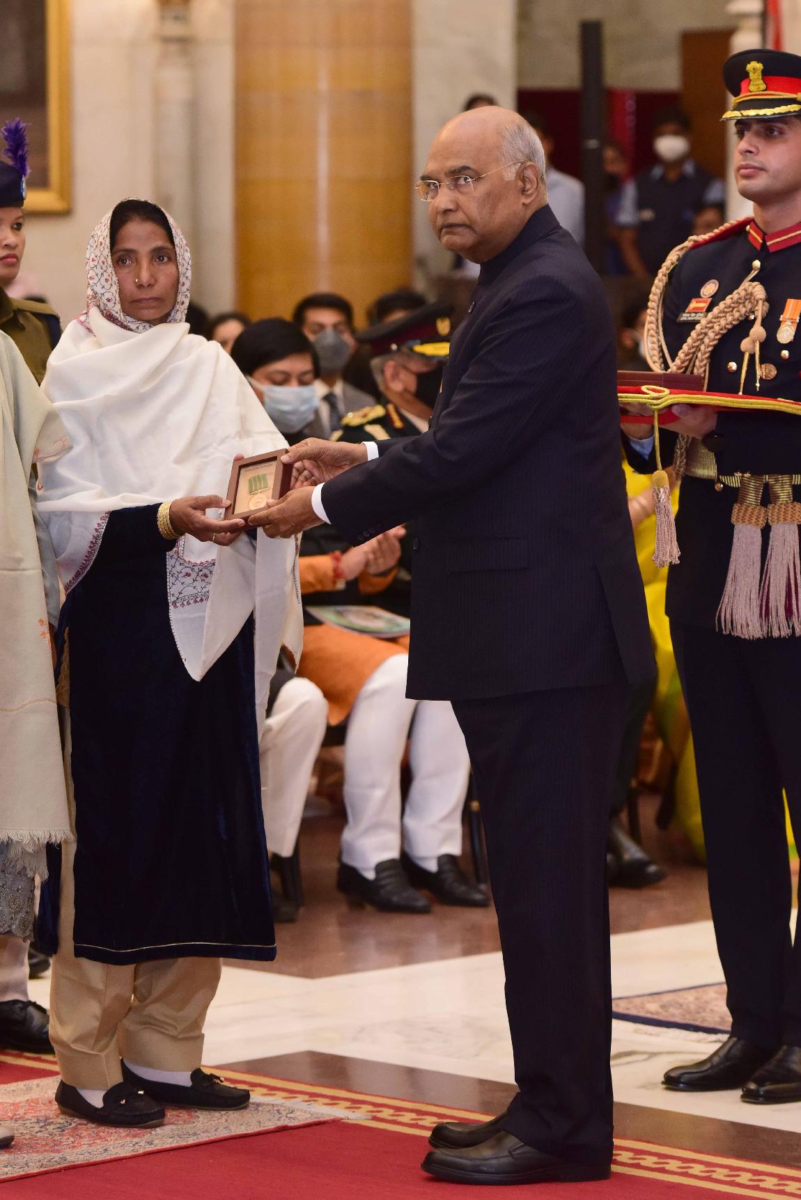 | Caption: | The President of India, Shri Ram Nath Kovind presents the Gallantry Awards and Distinguished Service Decorations for the year 2021, at the Defence Investiture Ceremony-II, at Rashtrapati Bhavan on November 23, 2021. |