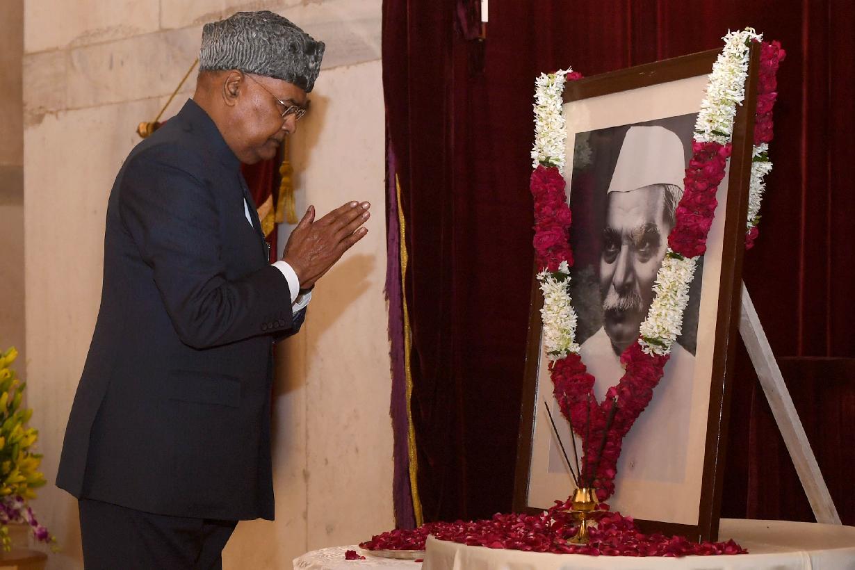 | Caption: | The President of India, Shri Ram Nath Kovind paying homage to Dr. Rajendra Prasad, the first President of India on his birth anniversary, at Rashtrapati Bhavan on December 03, 2021. |
