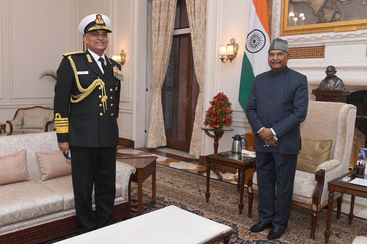 | Caption: | The Chief of the Naval Staff, Admiral R. Hari Kumar calling on the President of India, Shri Ram Nath Kovind, at Rashtrapati Bhavan on December 03, 2021. |