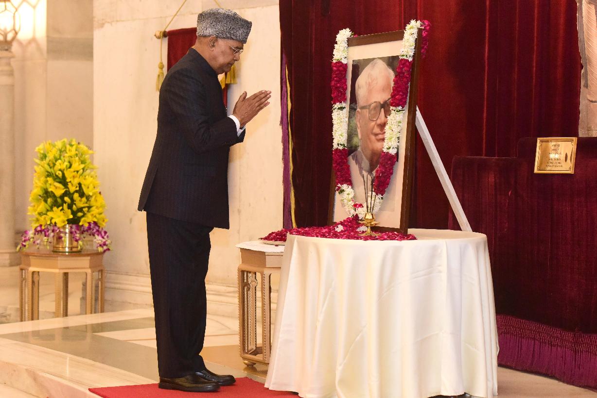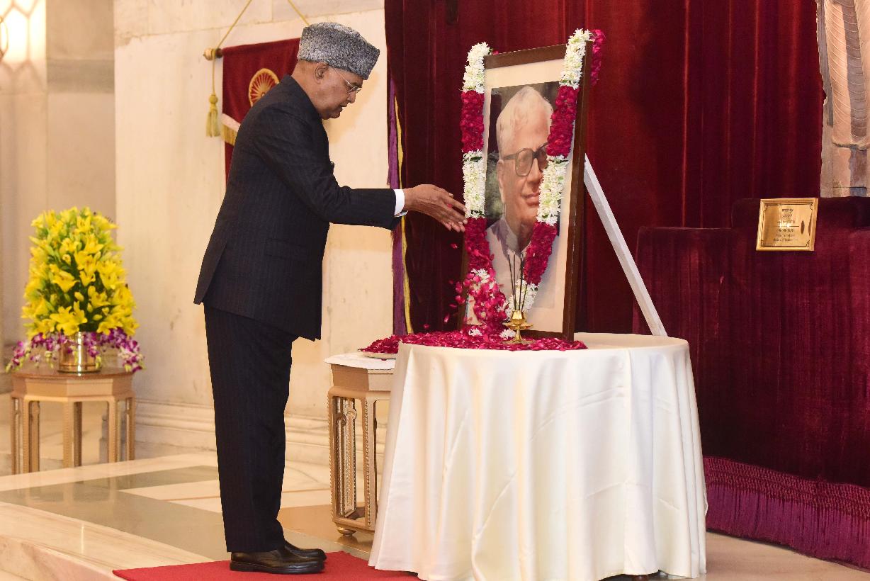| Caption: | The President of India, Shri Ram Nath Kovind paying floral tributes to Shri R. Venkataraman, former President of India on his birth anniversary, at Rashtrapati Bhavan on December 04, 2021. |