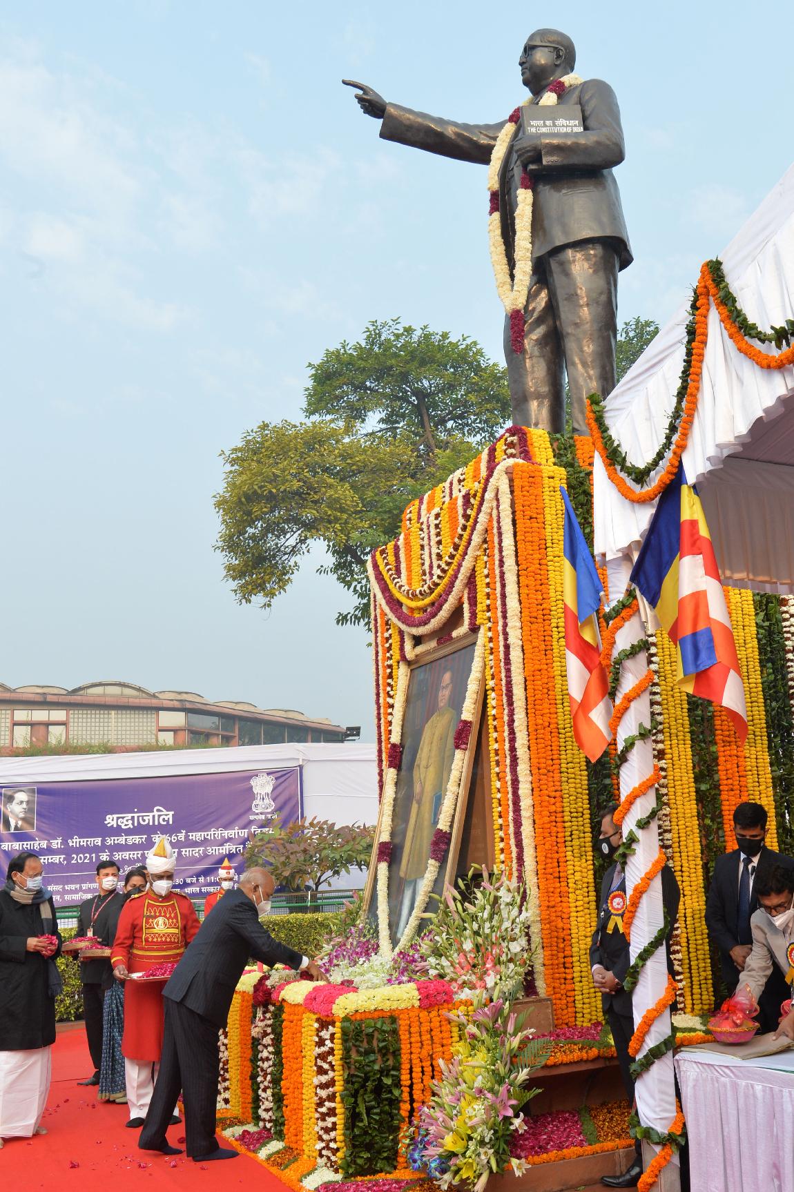 | Caption: | The President of India, Shri Ram Nath Kovind paying floral tributes to Babasaheb Dr. B.R. Ambedkar on his Mahaparinirvan Diwas, in New Delhi on December 06, 2021. |