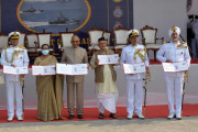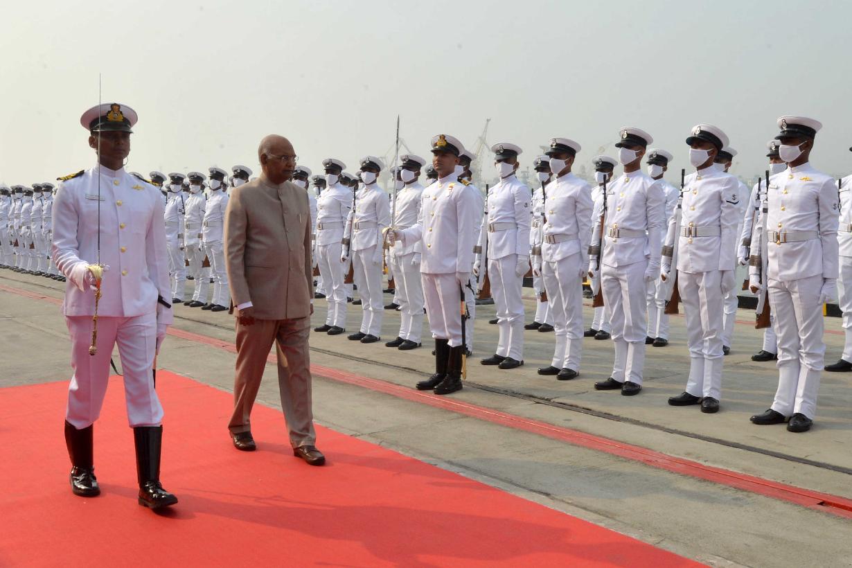 | Caption: | The President of India, Shri Ram Nath Kovind presents President s Standard to the 22nd Missile Vessel Squadron, in Mumbai, Maharashtra on December 08, 2021. |