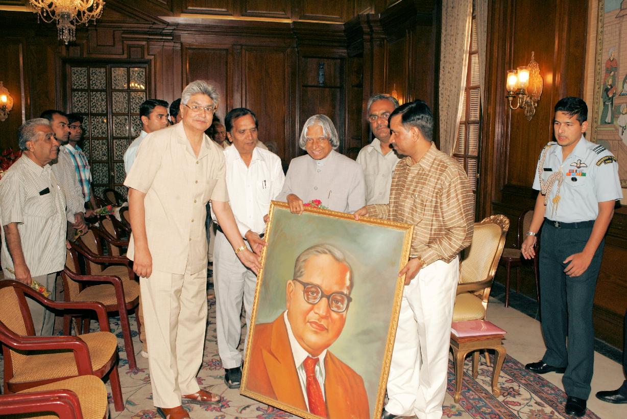 | Caption: | The President of India, Dr A P J Abdul Kalam meeting with the Delegation on the occasion of the Ambedkar Jayanti at Rashtrapati Bhavan in New Delhi on April 14, 2006 |
