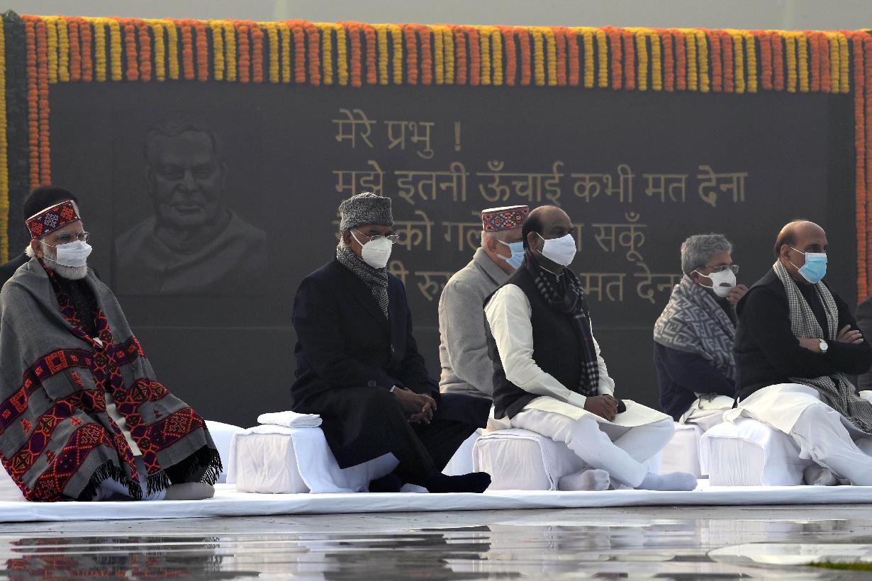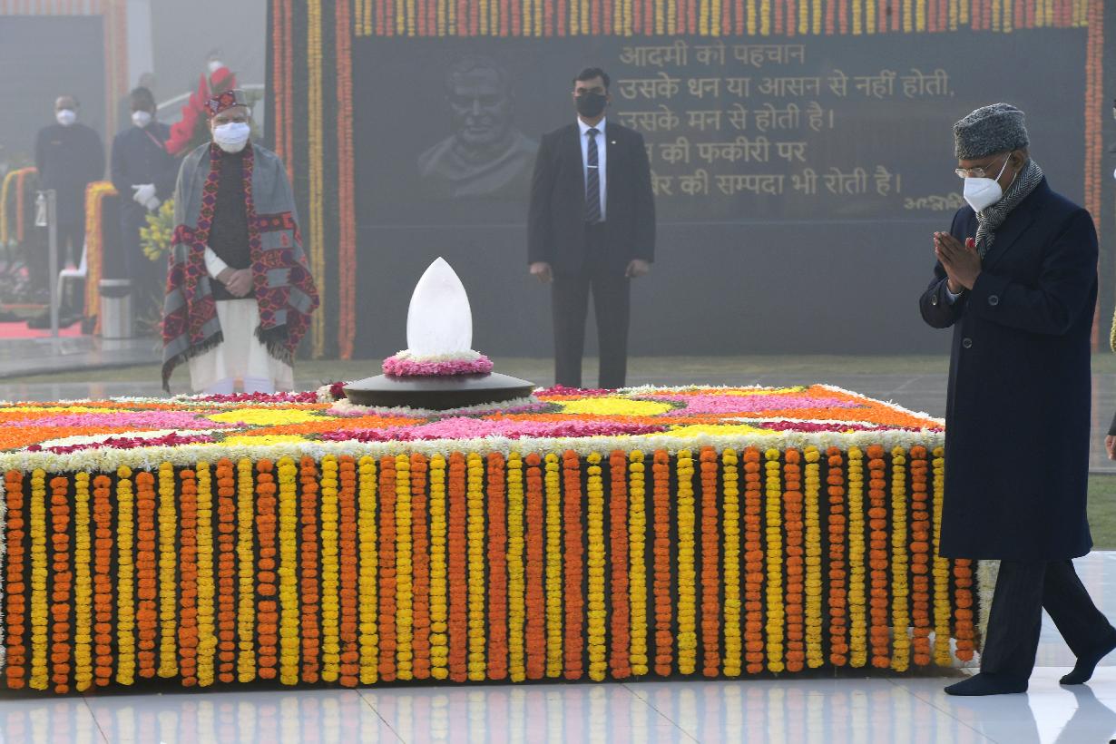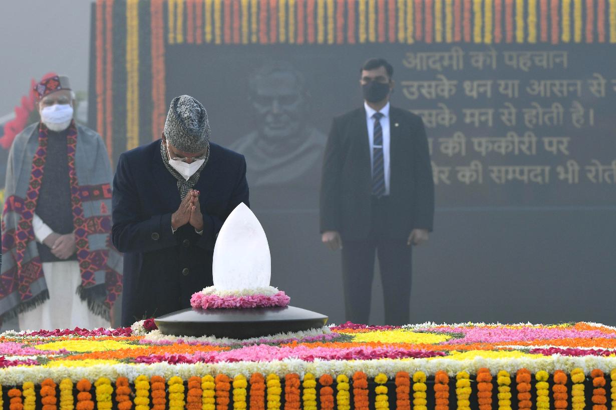 | Caption: | The President of India, Shri Ram Nath Kovind paying tributes to Shri Atal Bihari Vajpayee, former Prime Minister of India on his birth anniversary, at Sadaiv Atal, in New Delhi on December 25, 2021. |
