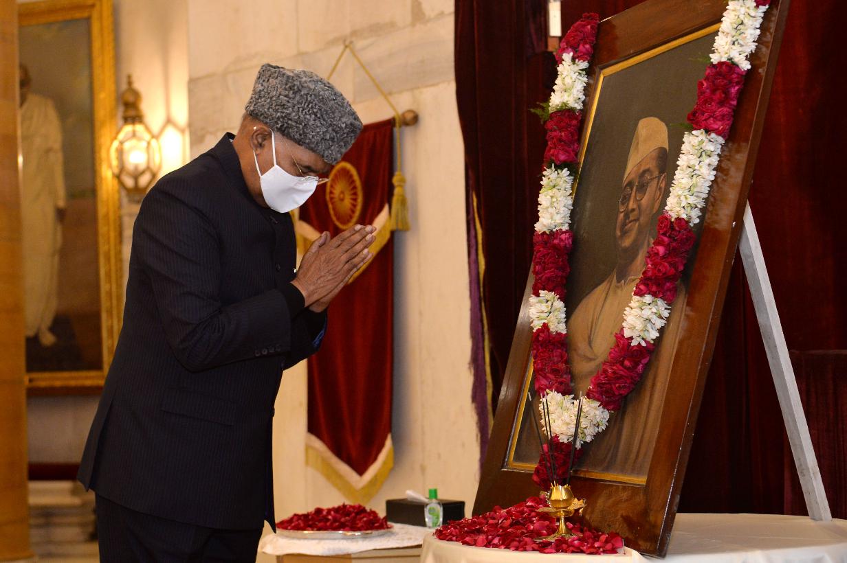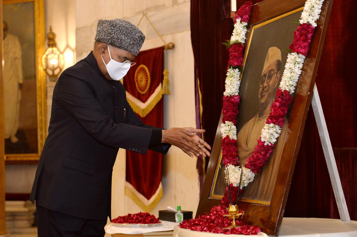 | Caption: | The President of India, Shri Ram Nath Kovind paying floral tributes to Netaji Subhash Chandra Bose on his birth anniversary, at Rashtrapati Bhavan on January 23, 2022. |