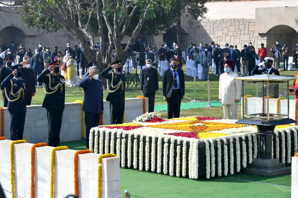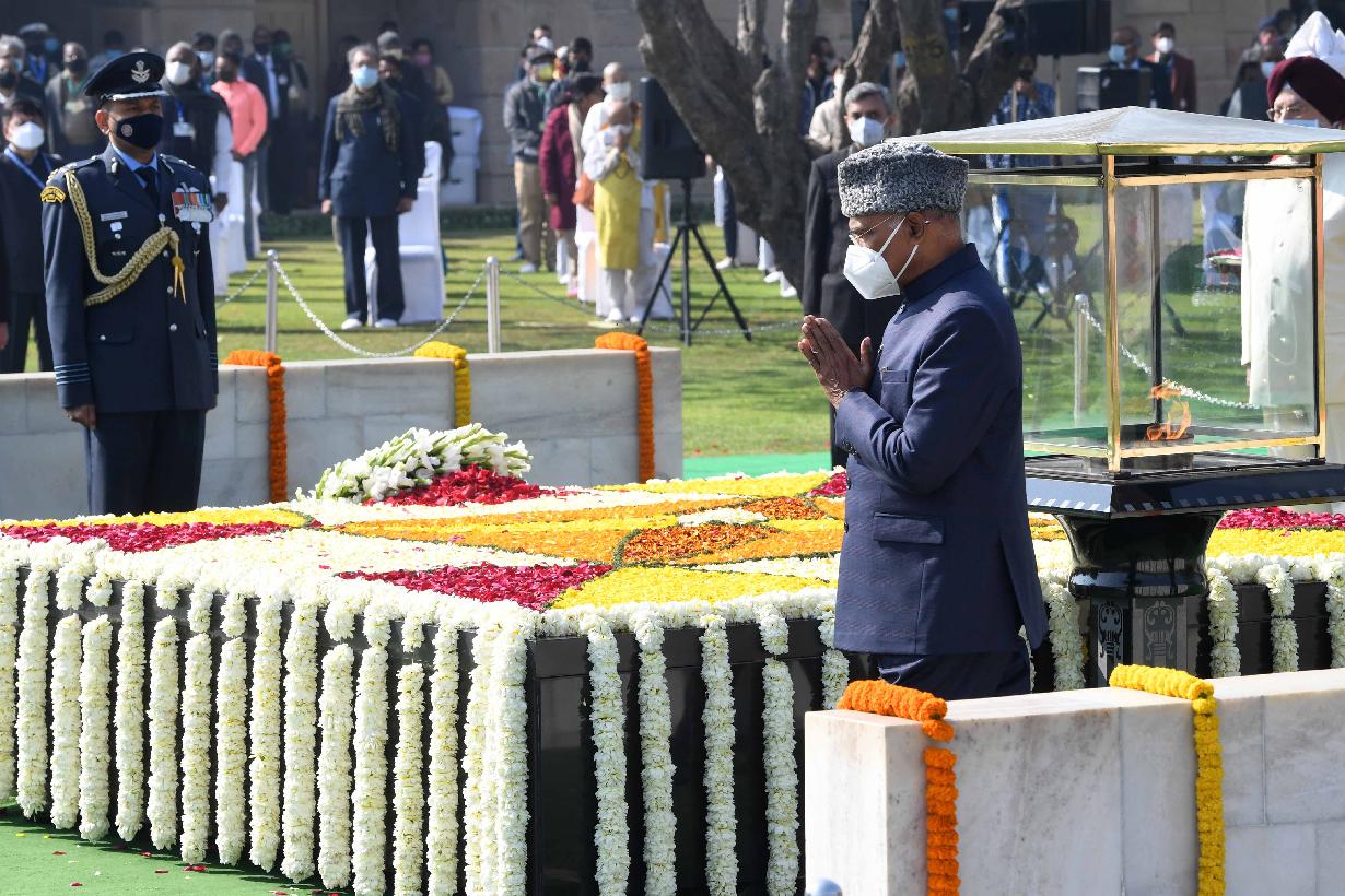 | Caption: | The President of India, Shri Ram Nath Kovind paid homage to Mahatma Gandhi on Martyrs Day and attended Sarva Dharma Prarthana at Rajghat, in New Delhi on January 30, 2022. |