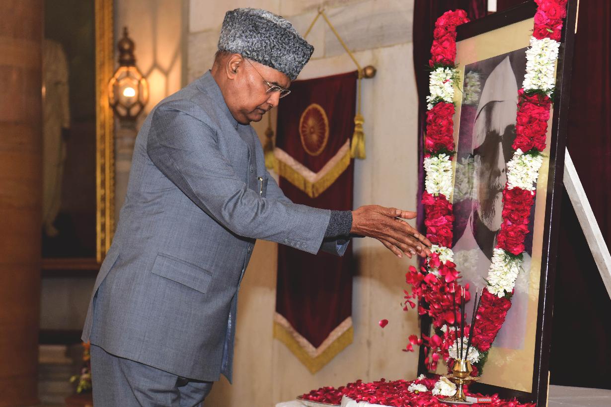 | Caption: | The President of India, Shri Ram Nath Kovind paying floral tributes to Dr. Zakir Husain, former President of India, on his birth anniversary, at Rashtrapati Bhavan on February 08, 2022. |