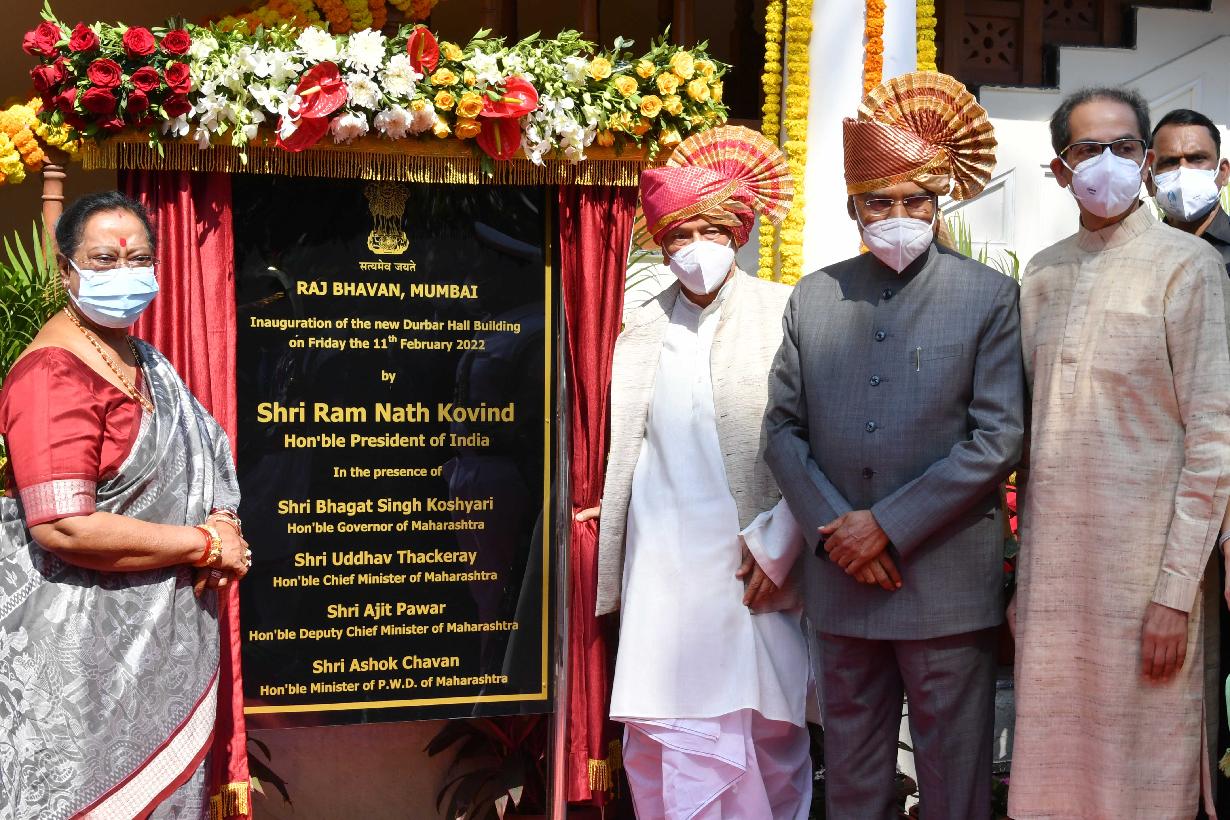 | Caption: | The President of India, Shri Ram Nath Kovind inaugurates the new Durbar Hall, at Raj Bhavan, Mumbai on February 11, 2022. |