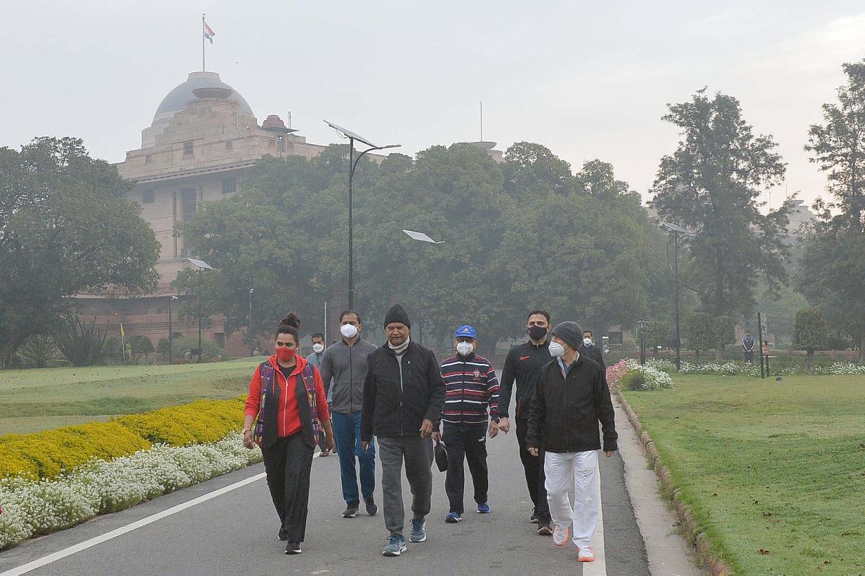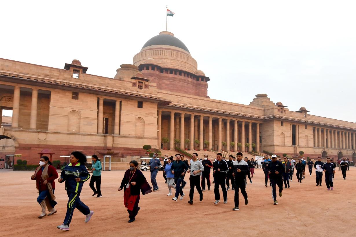 | Caption: | The President of India, Shri Ram Nath Kovind and the First Lady, Smt. Savita Kovind flagging off a fitness run, as part of the Azadi ka Amrit Mahotsav celebrations, at Rashtrapati Bhavan on March 06, 2022. |
