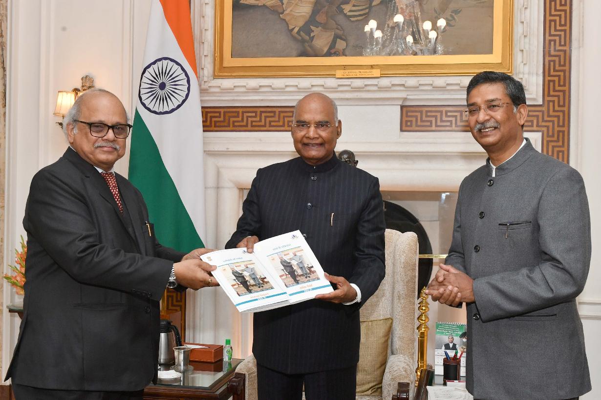 | Caption: | The Chairperson, Lokpal of India, Shri Justice Pinaki Chandra Ghose along with Secretary, Lokpal of India, Shri Bharat Lal called on the President of India, Shri Ram Nath Kovind and presented an Annual Report (2020-21) of the Lokpal of India, at Rashtrapati Bhavan on March 08, 2022. |
