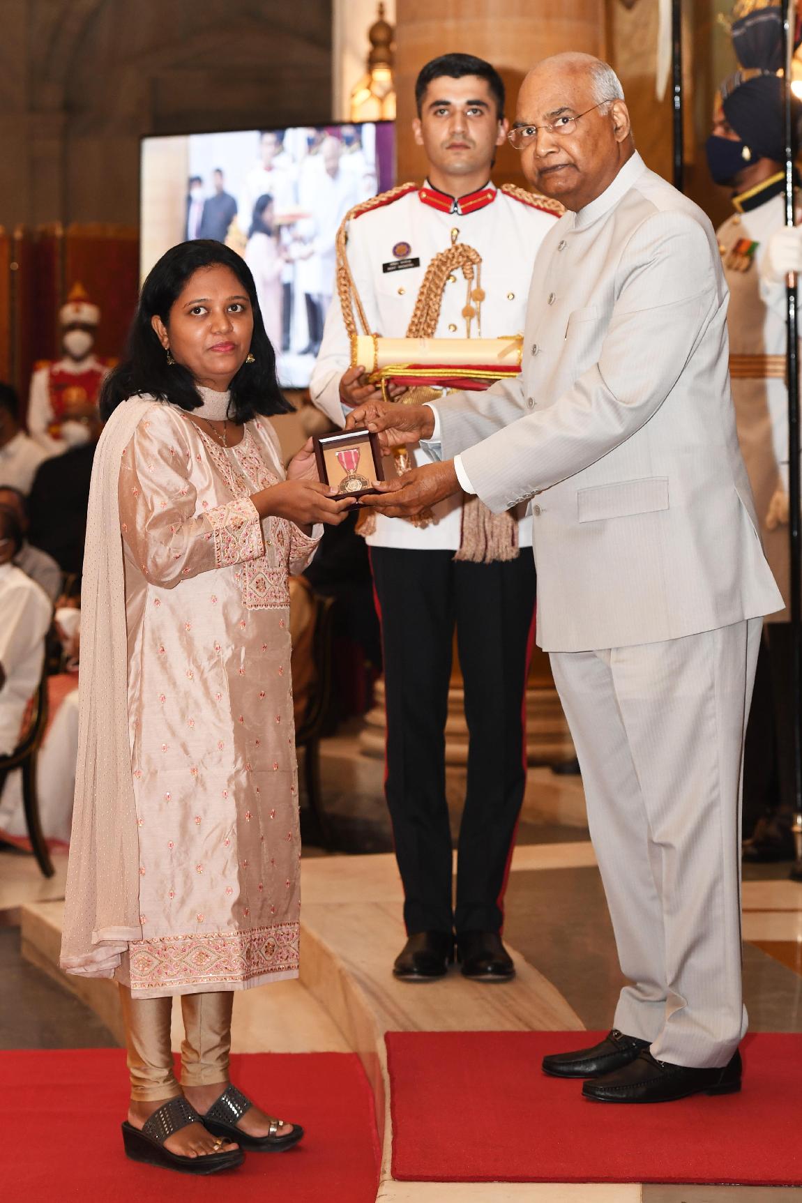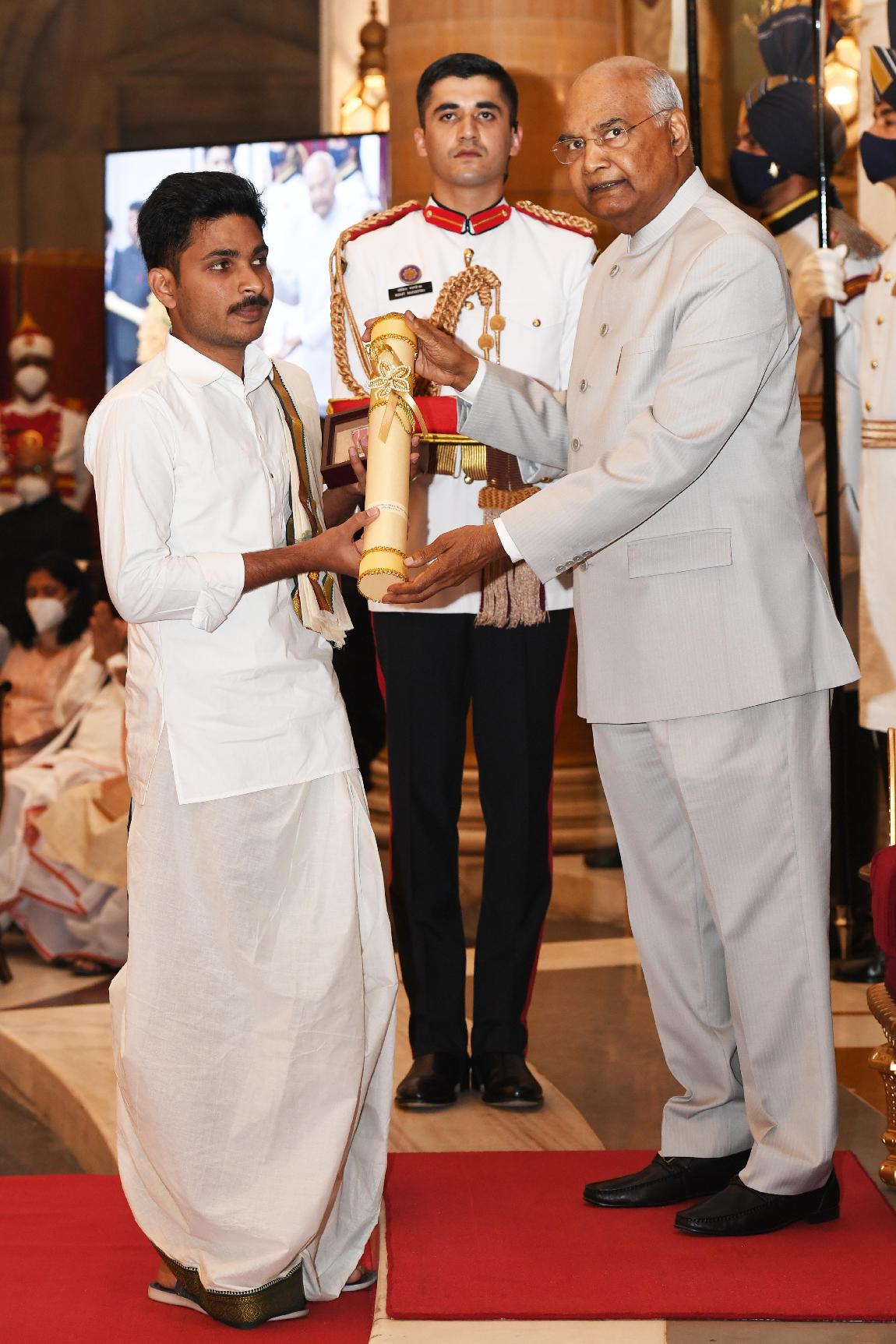 | Caption: | The President of India, Shri Ram Nath Kovind presents Padma Shri awards, for the year 2022, at a Civil Investiture Ceremony-I, at Rashtrapati Bhavan on March 21, 2022. |