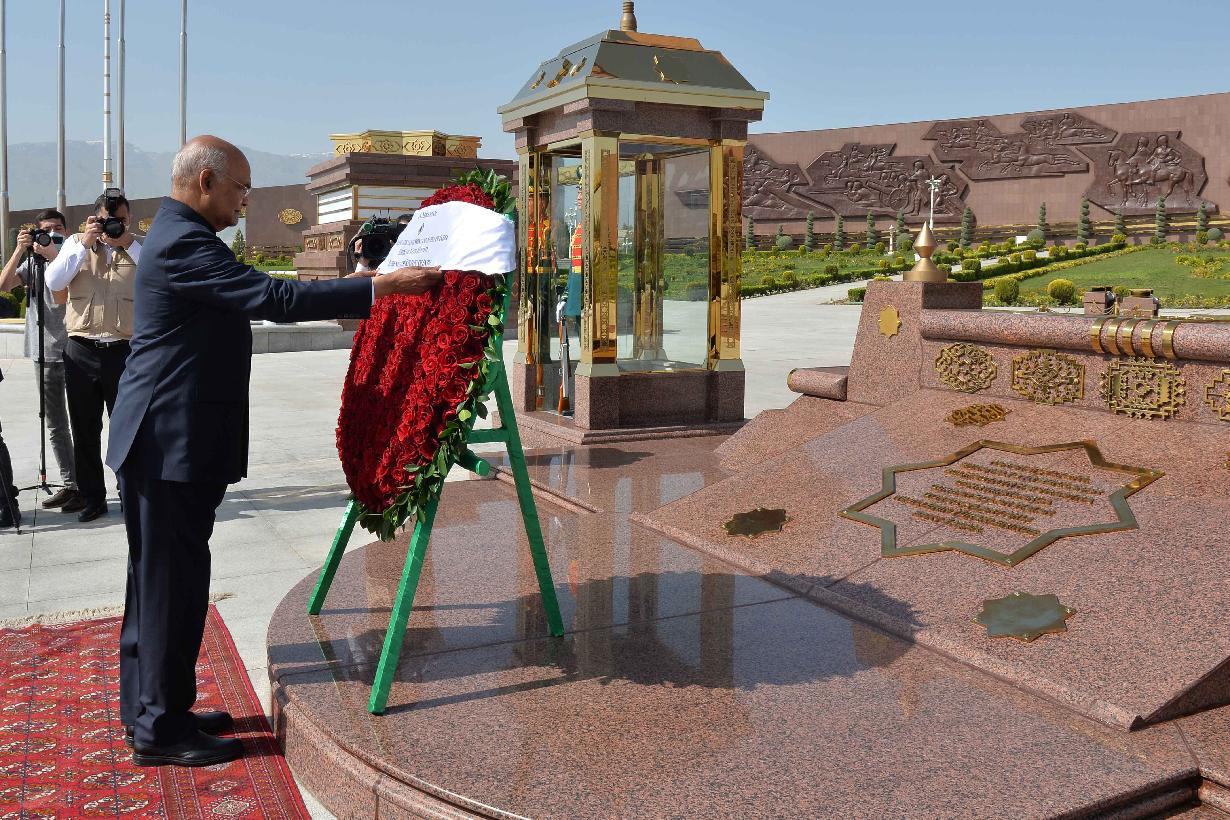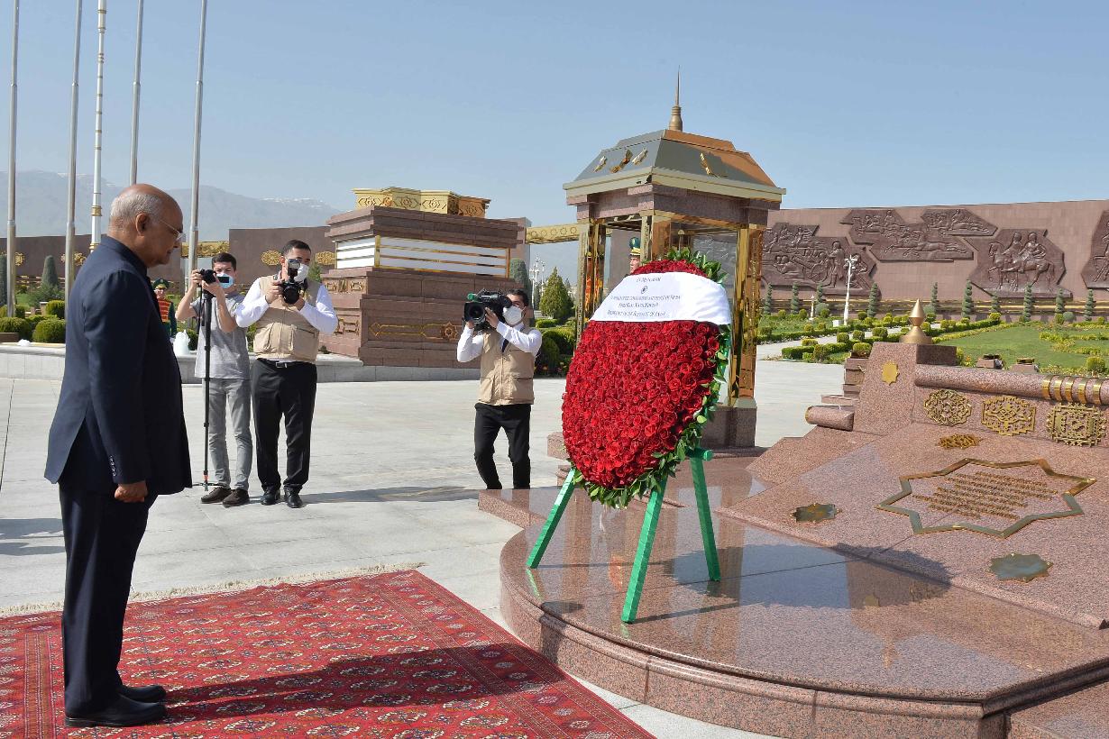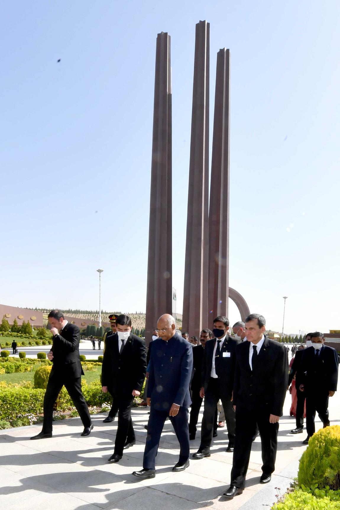 | Caption: | The President of India, Shri Ram Nath Kovind visited the People s Memorial and laid a wreath at the Monument of Eternal Glory, in Ashgabat, Turkmenistan on April 03, 2022. |