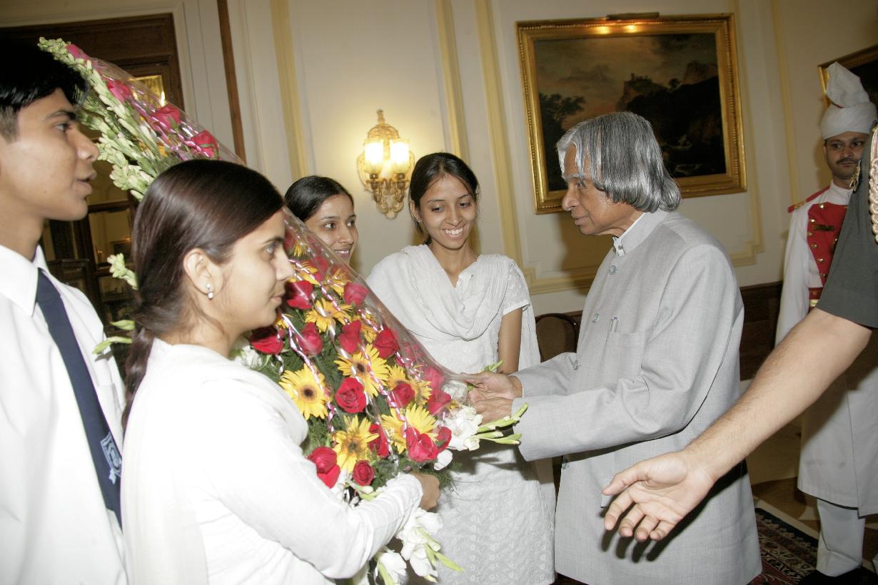 | Caption: | The Students from Krishna Institute of Education & Technology,Ghaziabad calling on the President of India, Dr A P J Abdul Kalam at the Yellow Drawing Room of Rashtrapati Bhavan in New Delhi on April 26, 2006 |