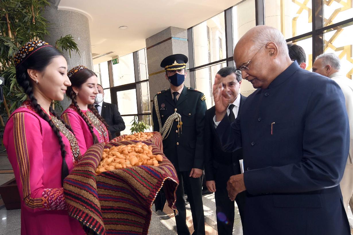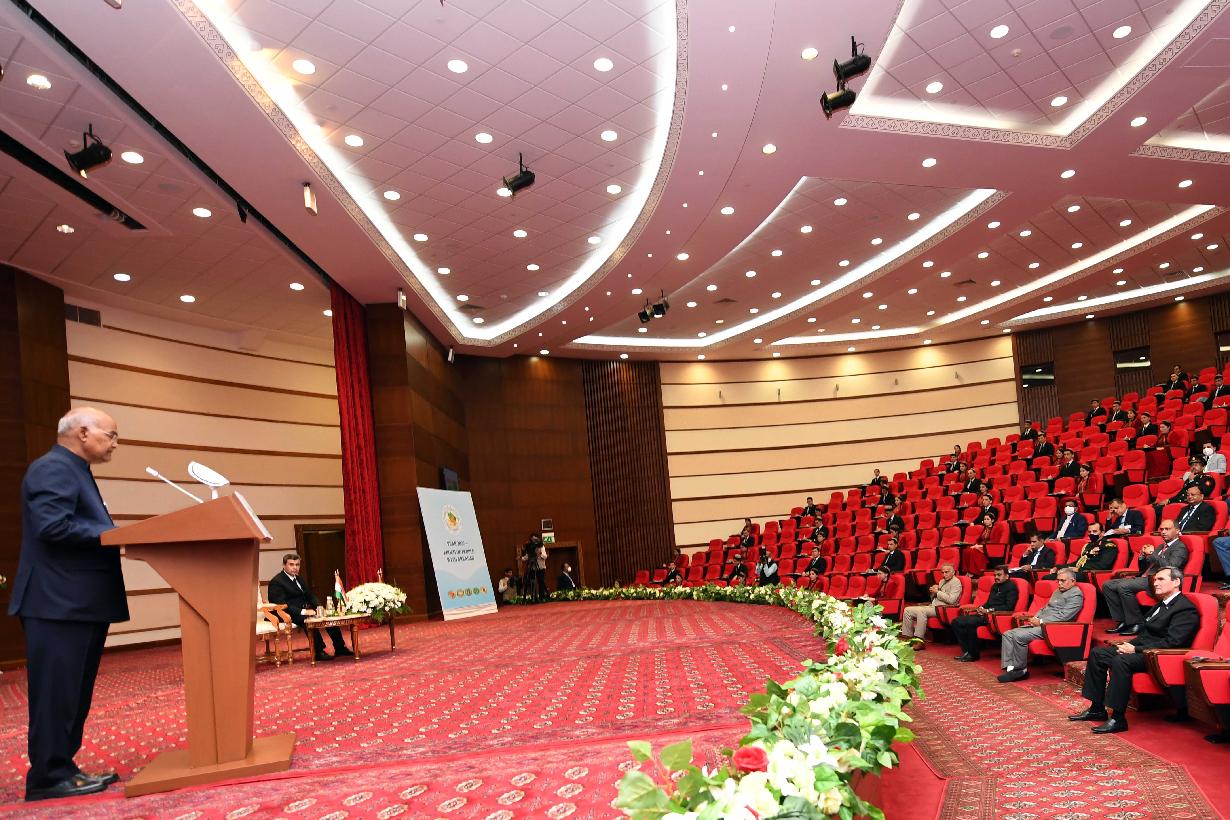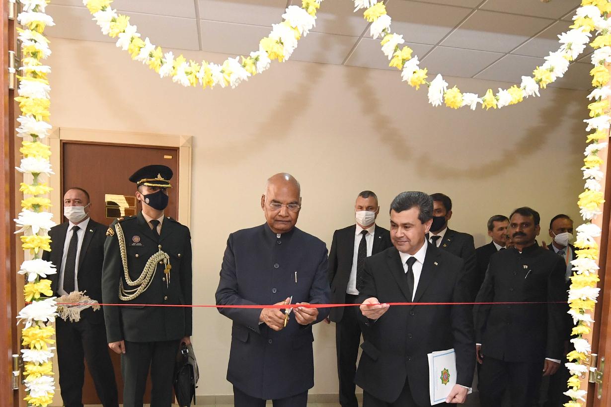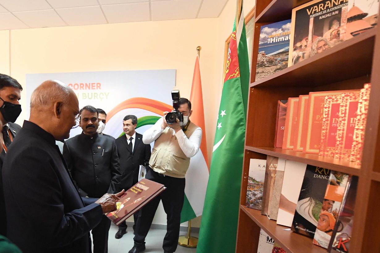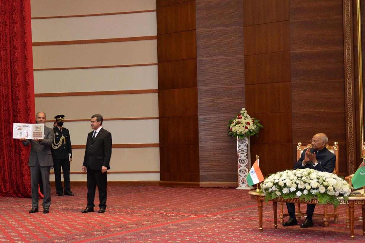 | Caption: | The President of India, Shri Ram Nath Kovind addressed the Institute of International Relations and inaugurated the India corner, in Ashgabat, Turkmenistan on April 03, 2022. On this occasion, a commemorative postage stamp was released celebrating 30 years of the establishment of diplomatic relations between India and Turkmenistan. |