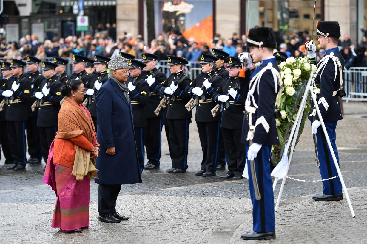 | Caption: | The President of India, Shri Ram Nath Kovind laid a wreath at Dam Square, in Amsterdam on April 05, 2022. |