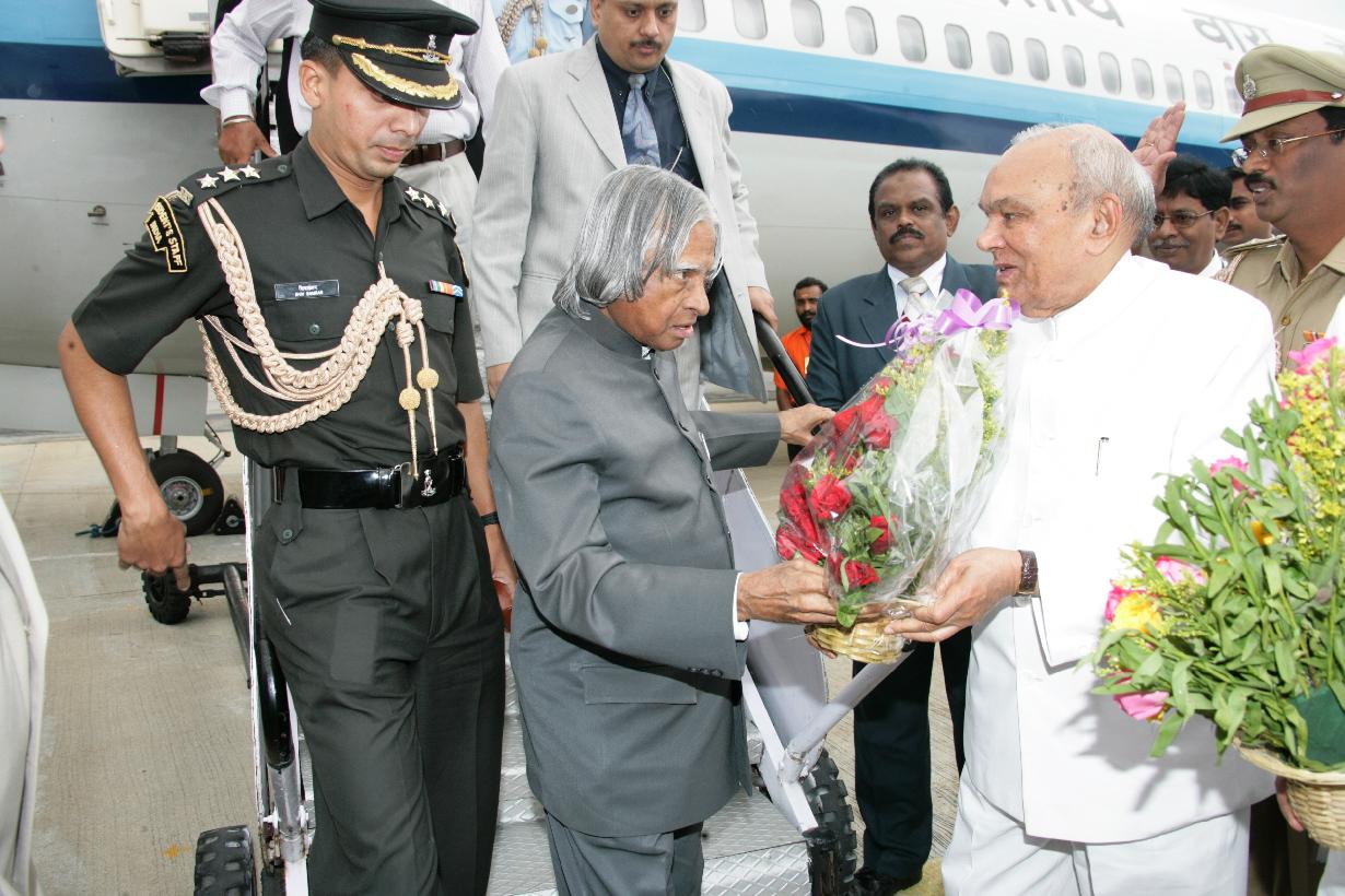 | Caption: | The President of India, Dr A P J Abdul Kalam being received by the Governor of Andhra Pradesh, Shri Rameshwar Thakur at Tirupati Airport in Andhra Pradesh on Dec 11, 2006 |