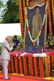 | Caption: | The President of India, Shri Ram Nath Kovind paying floral tributes to Babasaheb Dr. B.R. Ambedkar on his birth anniversary, in New Delhi on April 14, 2022. |