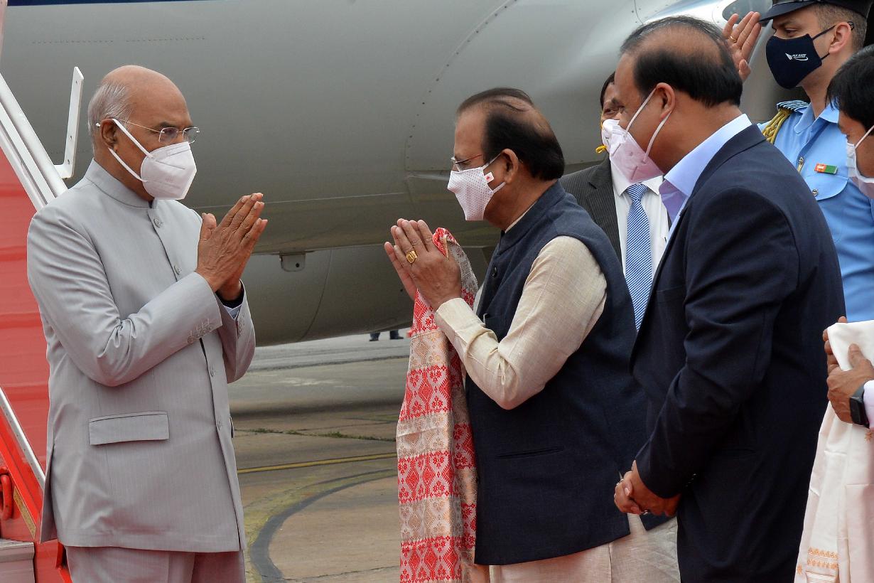 | Caption: | The President of India, Shri Ram Nath Kovind being received by the Governor of Assam, Prof. Jagdish Mukhi and the Chief Minister, Dr. Himanta Biswa Sarma, on his arrival, at Guwahati on May 03, 2022. |