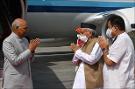 | Caption: | The President of India, Shri Ram Nath Kovind being received by the Governor of Maharashtra, Shri Bhagat Singh Koshyari and the Union Minister of Road Transport & Highways, Shri Nitin Gadkari, on his arrival, in Nagpur on May 08, 2022. |
